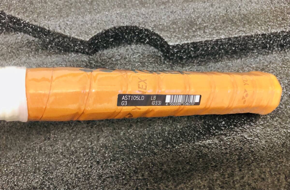 ●ラケットのシャフト内側に伊達のサインプリント入り。