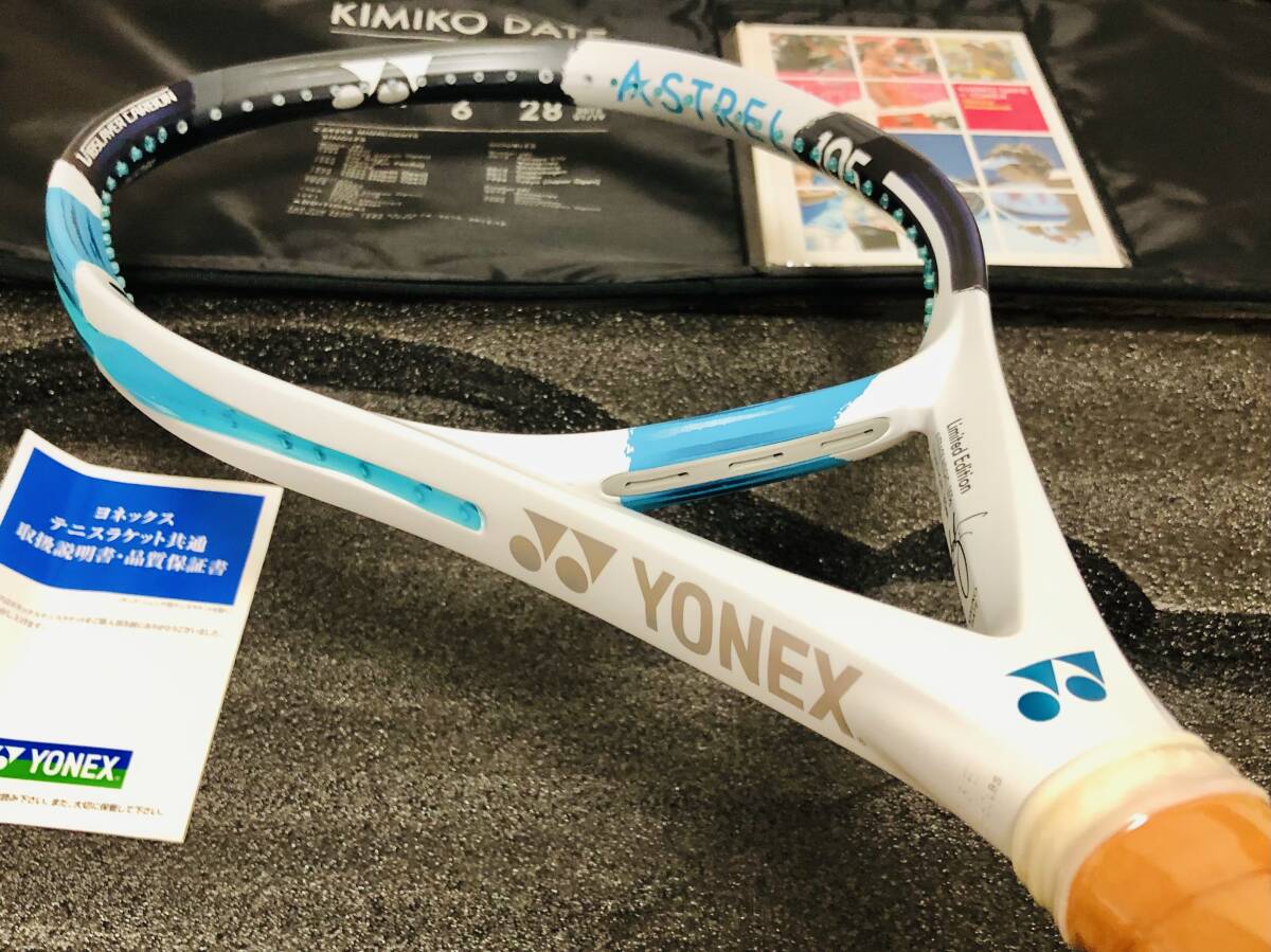 ヨネックスは、伊達公子の引退を記念し、同氏のプレーを支え続けたテニスラケットの最終モデル「ASTREL 105」の伊達使用スペックを日本国内300本限定で2017年12月下旬より発売致します。 「ASTREL」は、飛び、コントロール性能、打球感の柔らかさに優れた軽量モデルですが、伊達使用ラケットについては同氏の要望により、海外選手のハードヒットに打ち負けないよう重量を重くしておりました。ファンの方々からの「伊達と同じスペックのラケットを販売してほしい」というご要望にお応えし、今回発売するラケットは重量やバランス、グリップサイズなど全て同じ仕様になっております。さらに特典として、ラケットには伊達の「サインプリント」が入り、「特製ケース」と「伊達公子-ヨネックス ヒストリーフォトブック」をセットにして販売致します。