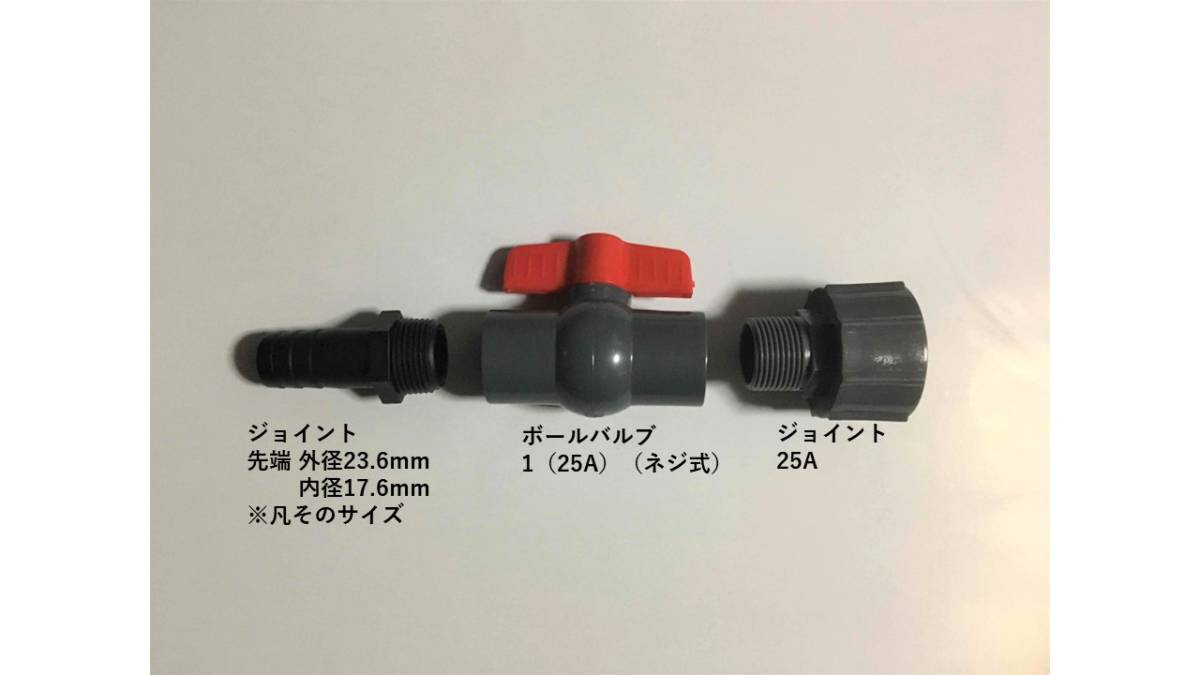 ・ジョイント コダマローリータンクのドレン口(排水口)に設置し、1インチ(内径25mm)のホースに接続することができます。