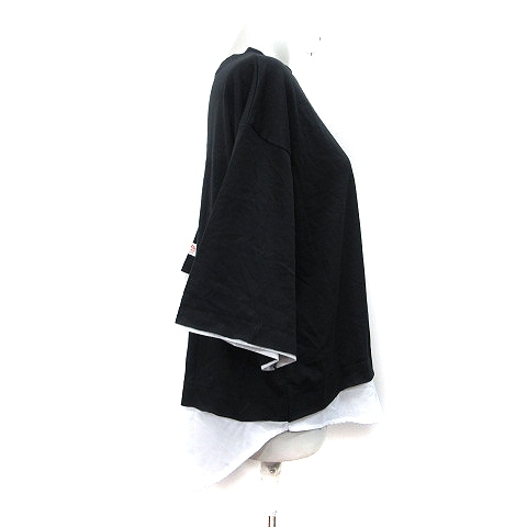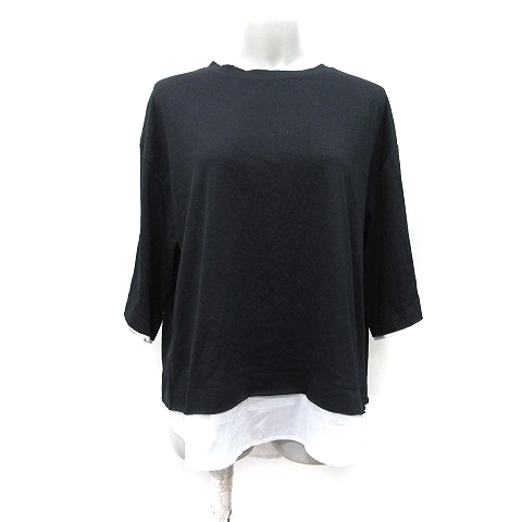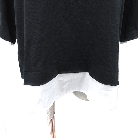 クラシカルエルフ CLASSICAL ELF カットソー 七分袖 フェイクレイヤード L 黒 ブラック 白 ホワイト /YI レディース