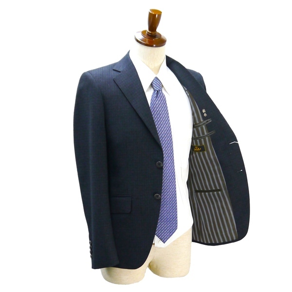 ・秋冬対応。REDA使用。2つボタンシングル。総裏地仕上げ。センターベント。フラップポケット。ネーム刺繍あり。本切羽。