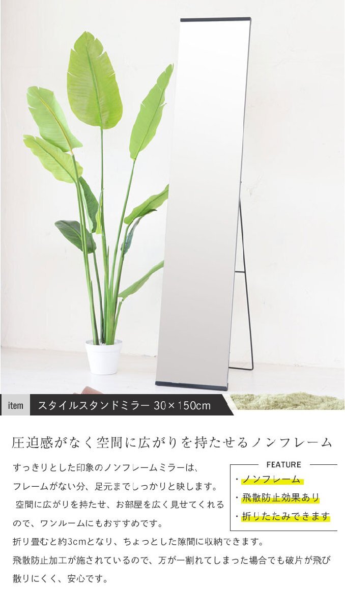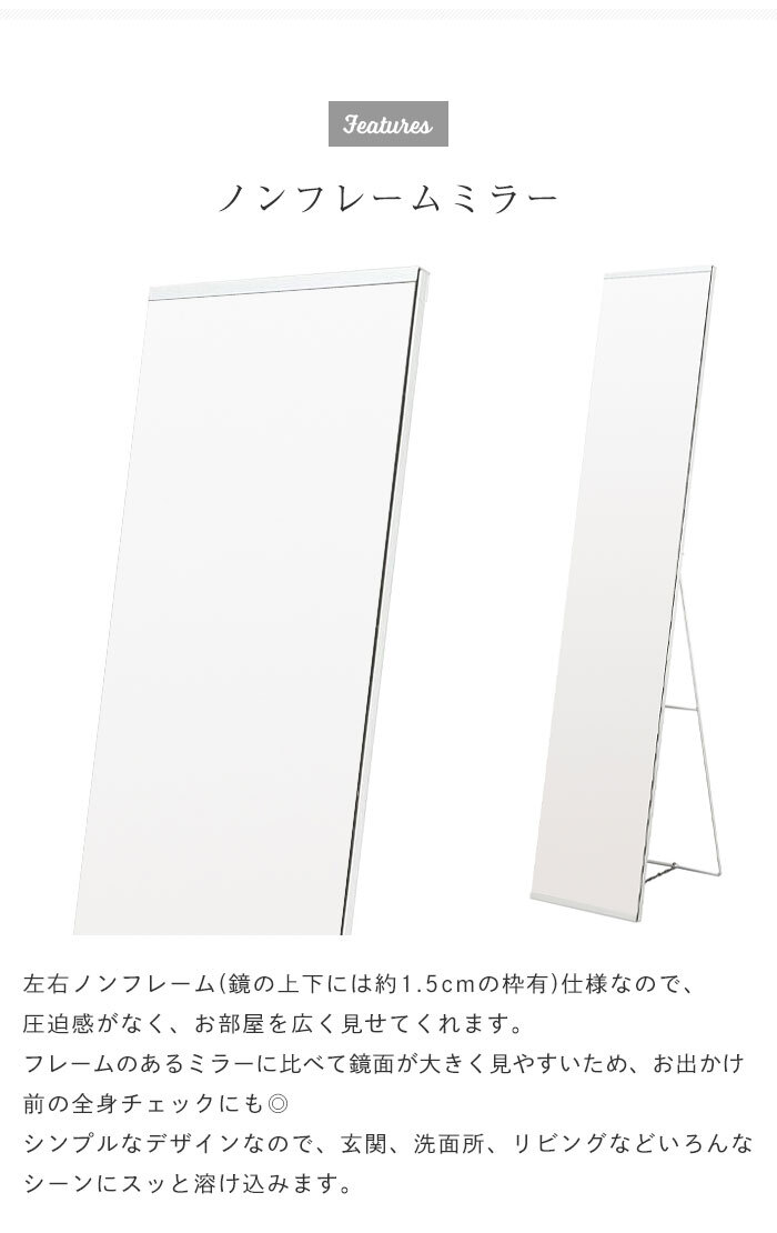 | スタンドミラー 鏡 姿見 全身 かがみ 全身ミラー ノンフレーム 高さ150cm 幅30cm 白 黒 ホワイト ブラック 北欧 人気 おしゃれ 鏡 大きい 大型 スタンド ミラー 玄関 飛散防止 完成品 姿見鏡 アンティークミラー オフィス 一人暮らし 新生活 省スペース |