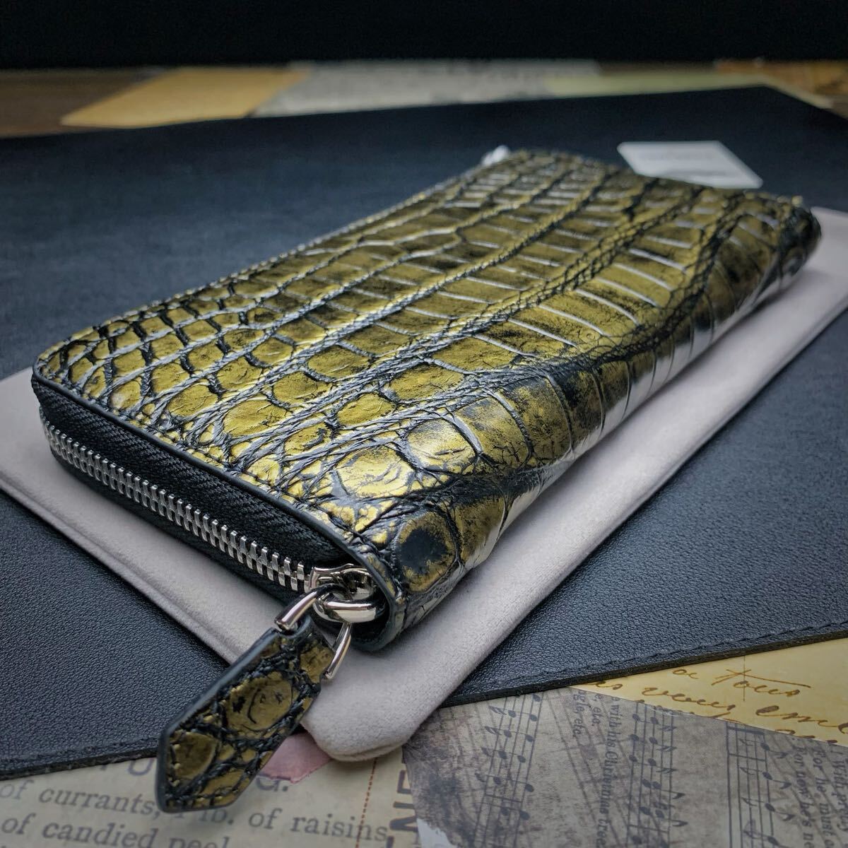 ・クロコダイルと呼ばれている品種のワニ革は人気が高く、独特の模様と凹凸が魅力で、高級ブランド品を中心にクロコダイルが多く使われています。今回はワニ革の代表格である『シャムクロコダイル』のセンターカット腹革のラウンドファスナー財布を出品します。