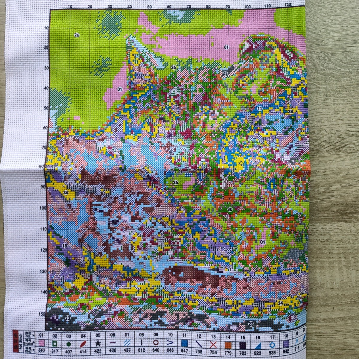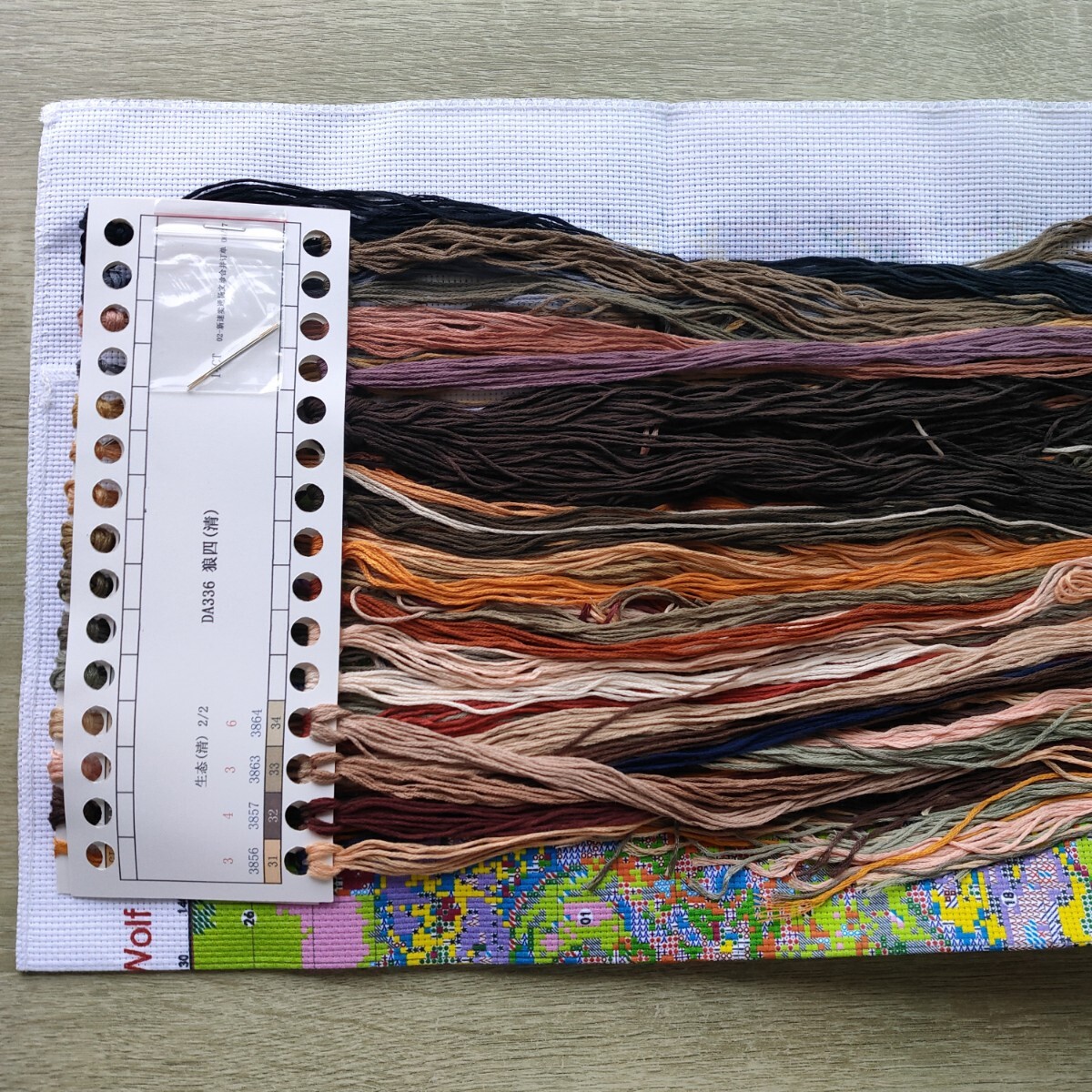 刺繍糸は余分に見積もって入っていますが、製作中もし足りなくなった場合は、ご自身でご用意ください。DMCの糸番号に対応しています。検品のため1度開封しています。