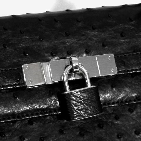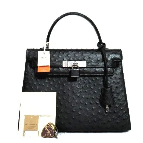 | ☆未使用 ☆定価28万☆HIGH CLASS ハイクラス*本革/オーストリッチ*ワンハンドル*ハンドバッグ*レディース*SV金具*ブラック*タグ付き |