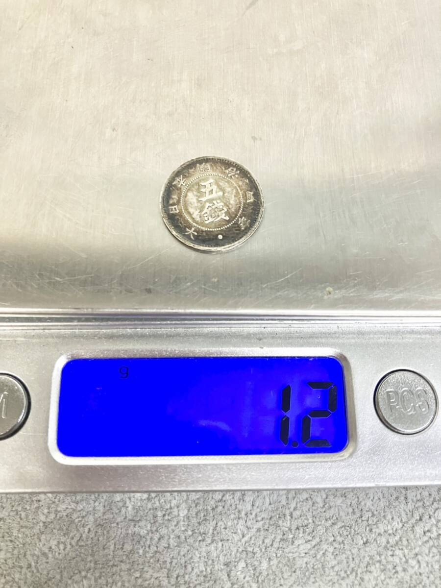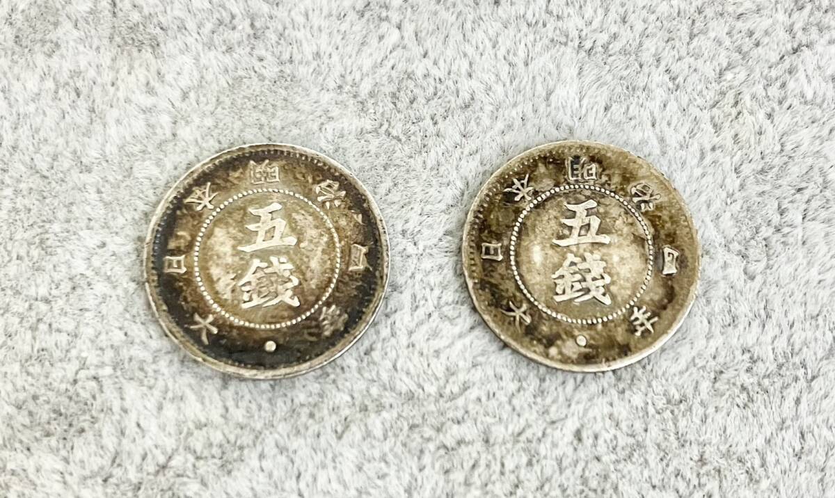 ☆1円スタート☆ 旭日大字5銭銀貨 2枚 明治4年 近代銀貨 古銭