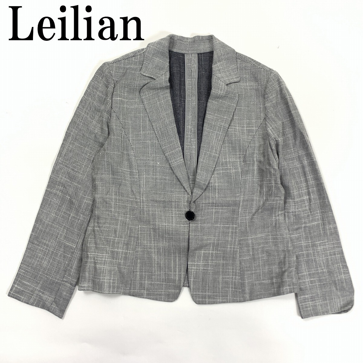 Leilian レリアン シルク テーラードジャケット グレー 13 YC931