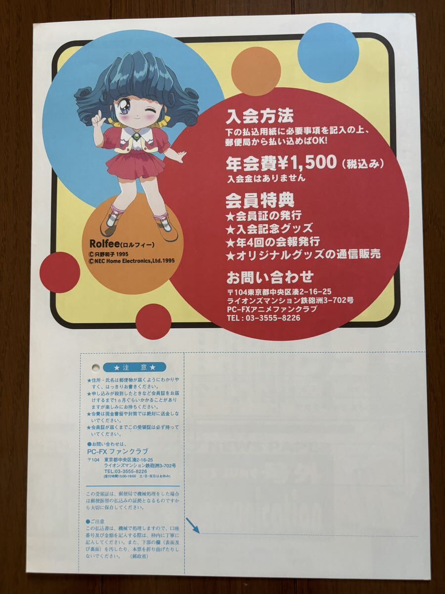 チラシ PC-FX アニメ ファンクラブ 1995 号外 ゲーム パンフレット カタログ NEC