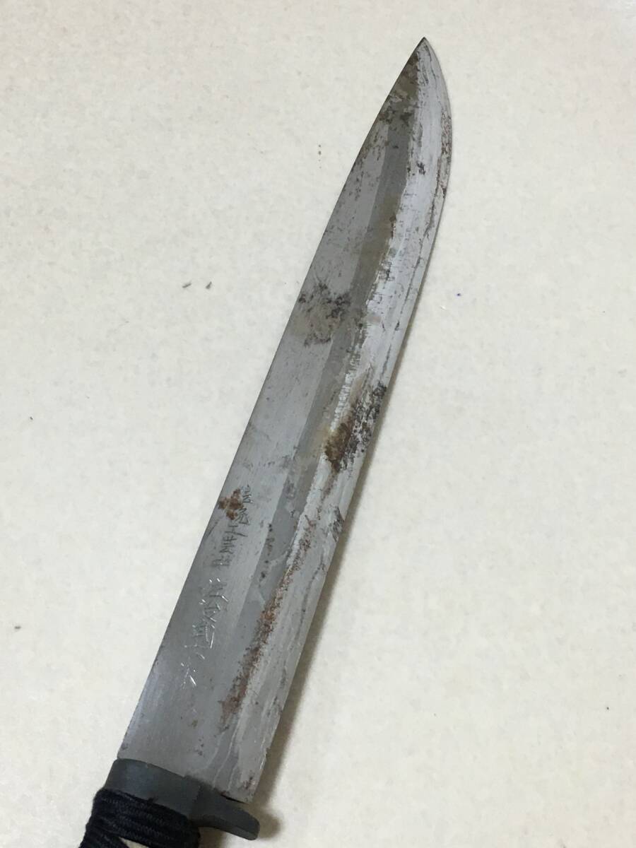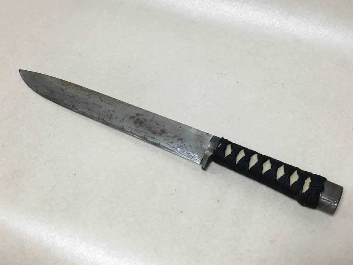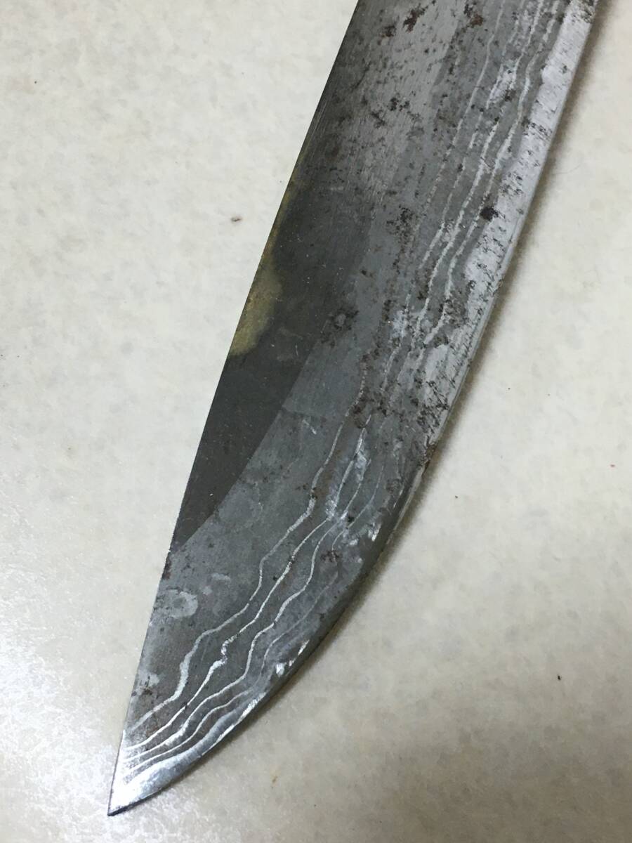 | * 商品説明 * 鞘はありません。 錆が多いです。 画像にて状態をご確認ください。 サイズ: 全長 42.5㎝ 刃渡 27.7㎝ 刃幅 3.8㎝ 刃厚み 0.6㎝ 重量 495g サイズにつきましては若干の誤差があるものとお考えください。