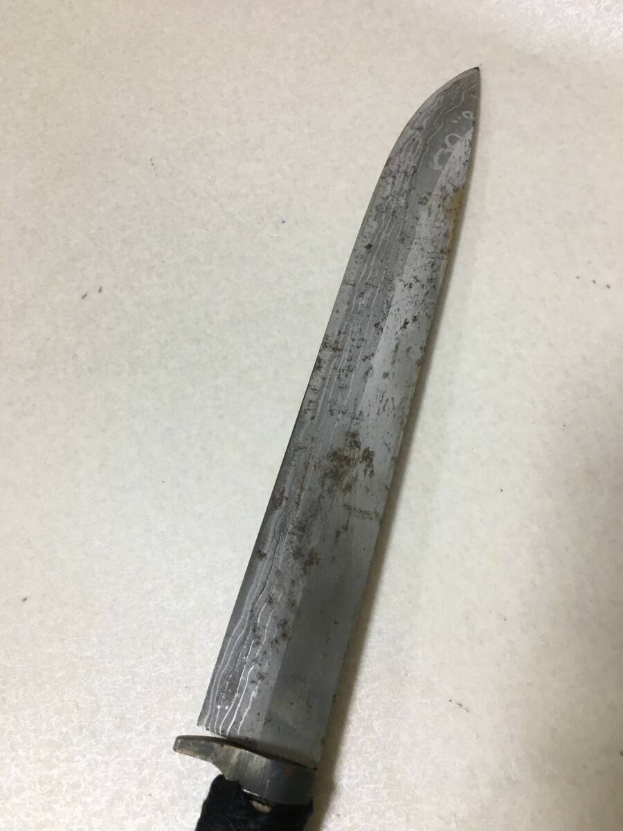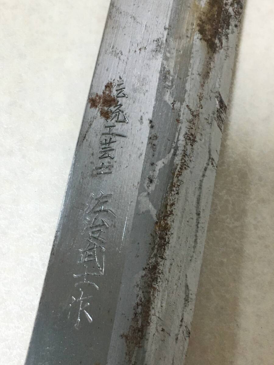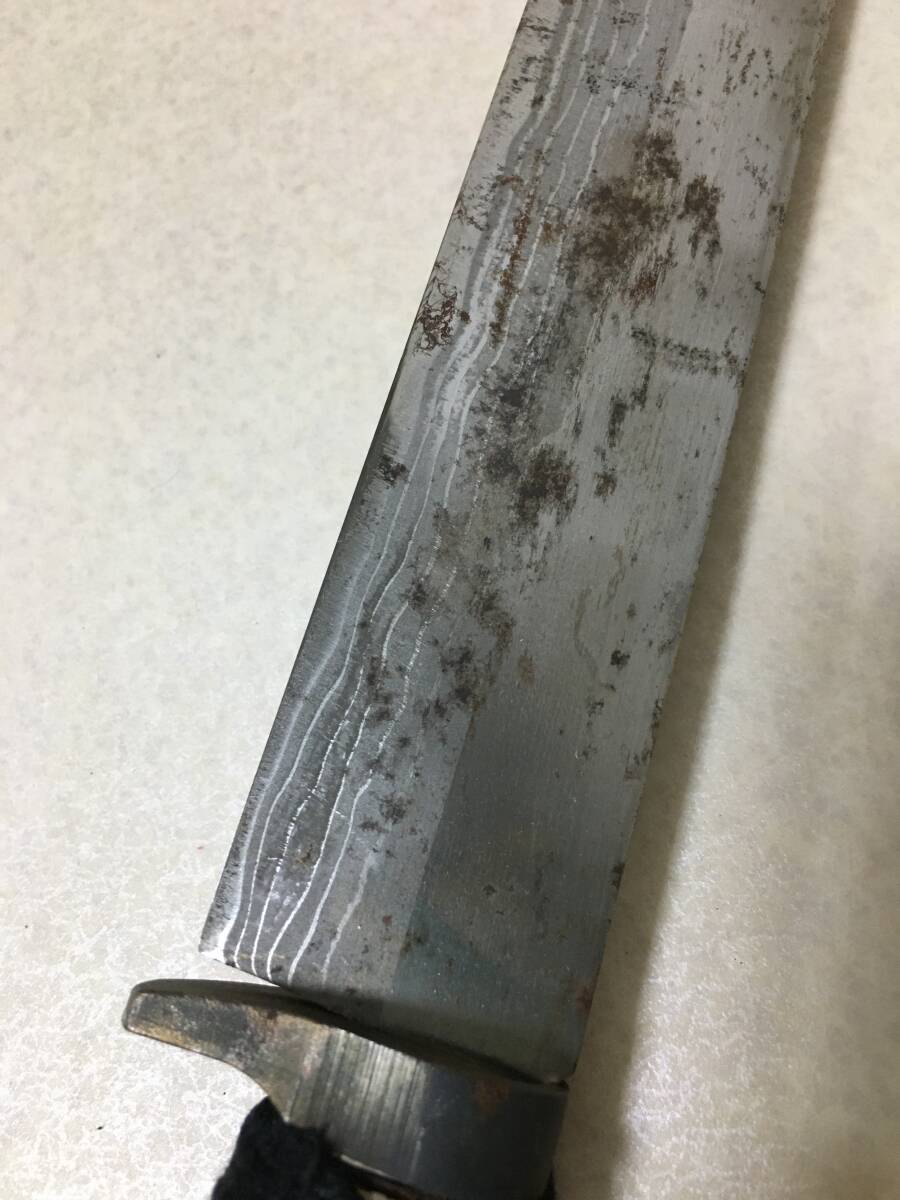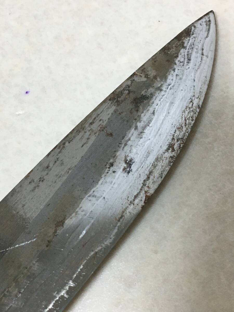 | * 商品説明 * 鞘はありません。 錆が多いです。 画像にて状態をご確認ください。 サイズ: 全長 42.5㎝ 刃渡 27.7㎝ 刃幅 3.8㎝ 刃厚み 0.6㎝ 重量 495g サイズにつきましては若干の誤差があるものとお考えください。
