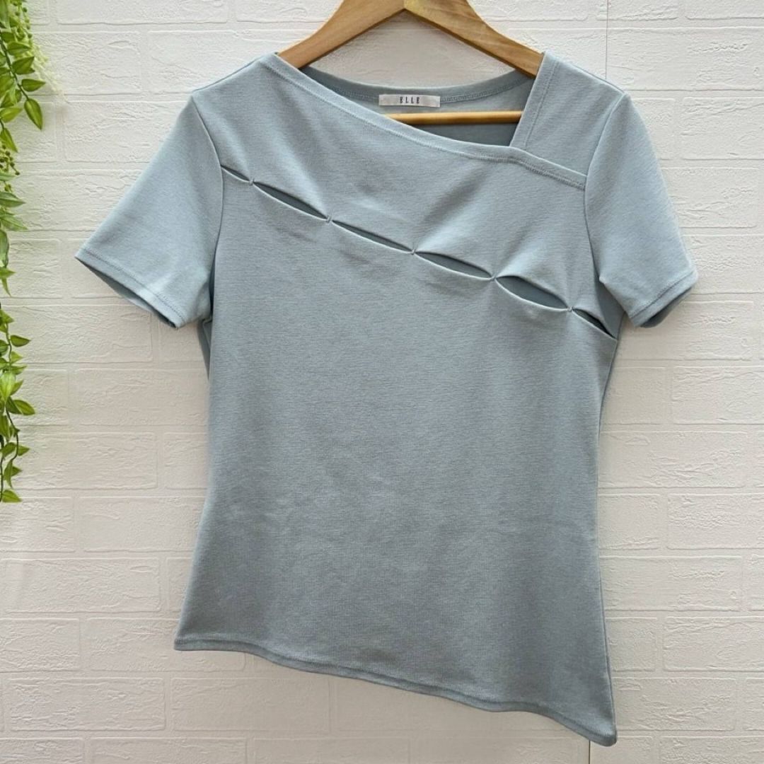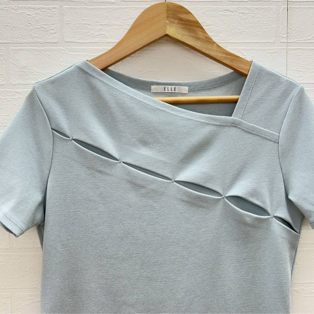 【ELLE】 アシンメトリートップス 半袖カットソー フェミニン 可愛い M.
