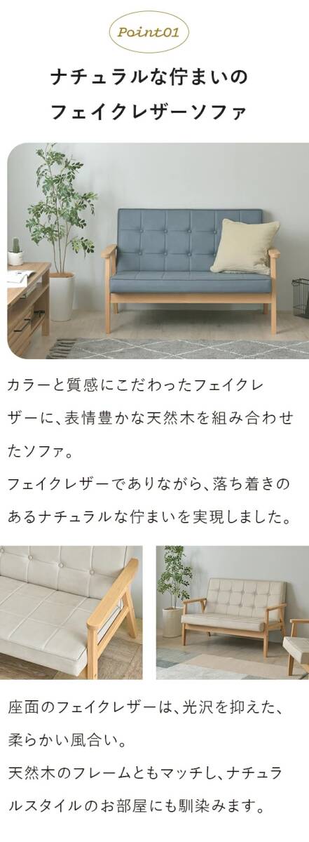 Point01 ナチュラルな佇まいの フェイクレザーソファ カラーと質感にこだわったフェイクレザーに、