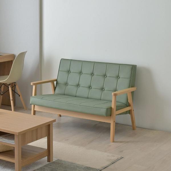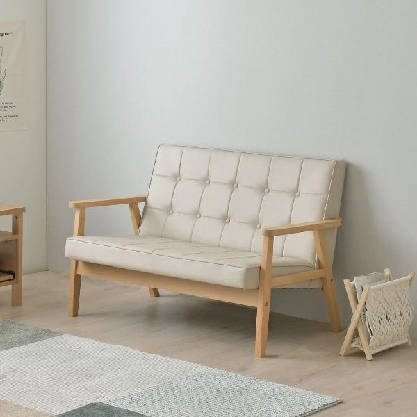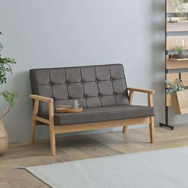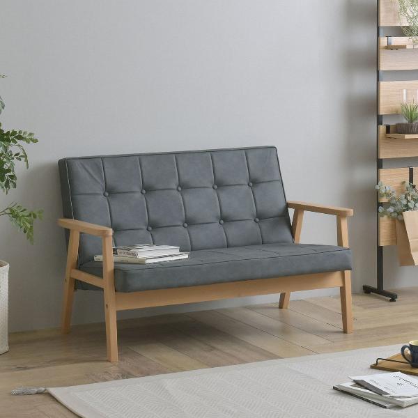 表情豊かな天然木を組み合わせたソファ。 フェイクレザーでありながら、