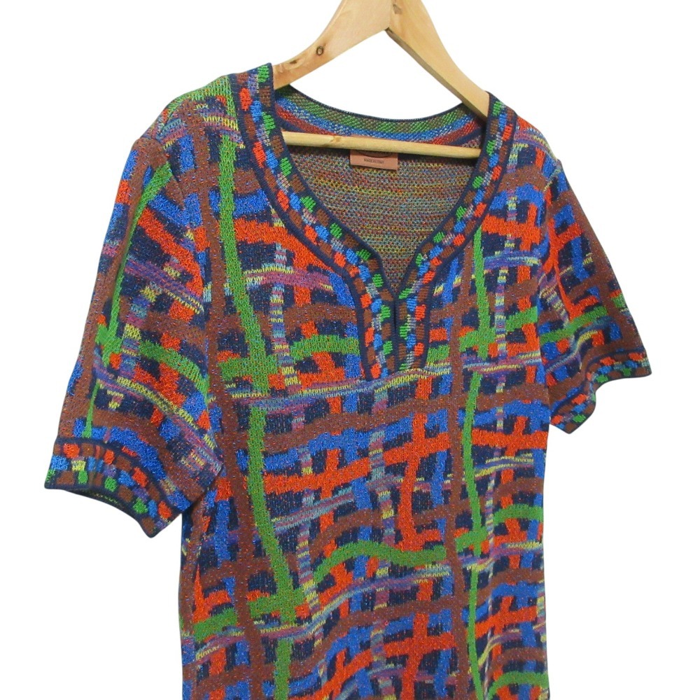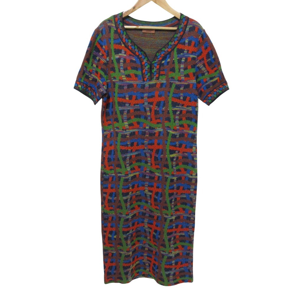 商品名:MISSONI ミッソーニ チェックジャガード 半袖 ロング ニットワンピース 44 マルチカラー