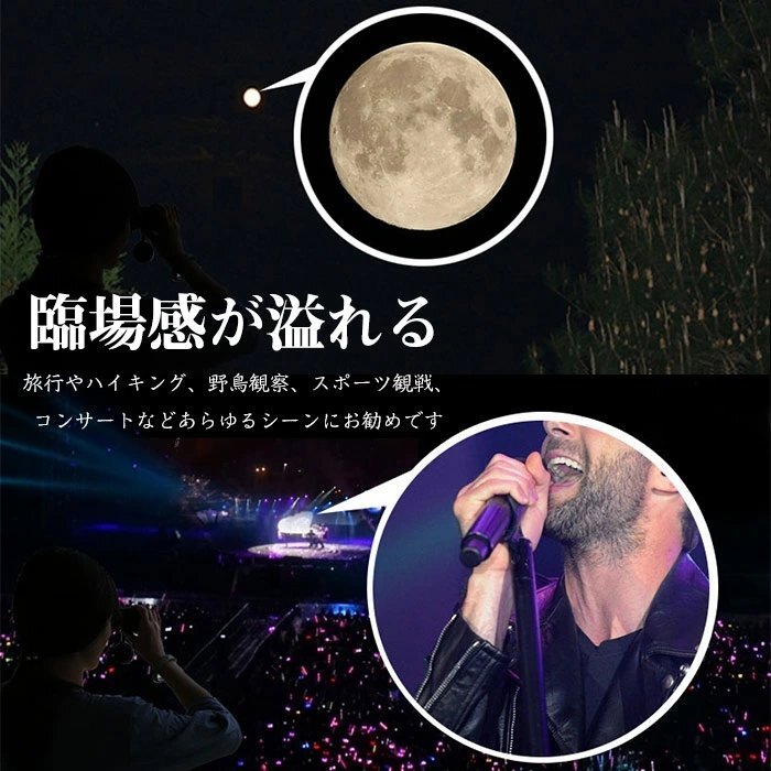 【優れた視覚明瞭度】 光学倍率10倍の高倍率レンズで対象物がより明るく鮮明に、解像力が上がりくっきり見えます。ピントを合わせて遠くのものを近く、細部まで鮮明に見えます。ライブを観賞する時に臨場感にあふれて広い視界が与えます。