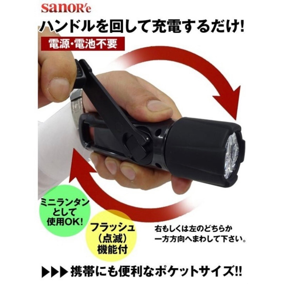 A145 訳あり新品 サナー 10点箱売り 地震 防災グッズに!! 電池 電源不要 充電式 手回しフラッシュライト GR ハンドルを回して充電するだけ