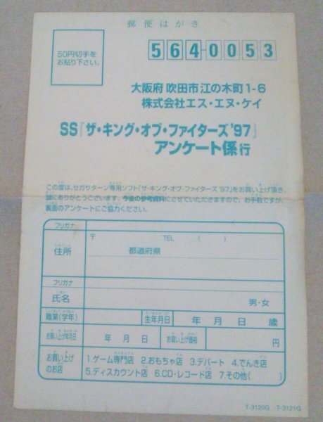 !ハガキのみ! キングオブファイターズ 97 セガサターン 【匿名発送・追跡番号あり】