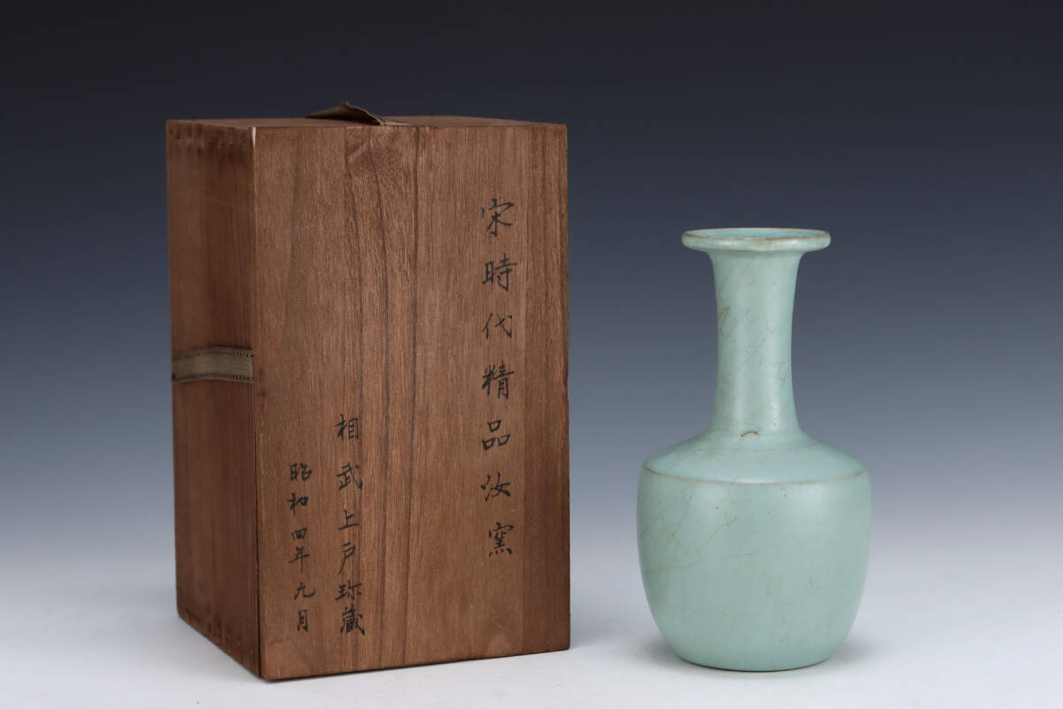▽鴻▽宋朝時代 陶磁器 汝窯天青釉紙槌瓶 時代木箱付き 染付 時代物 中国古美術 骨董品