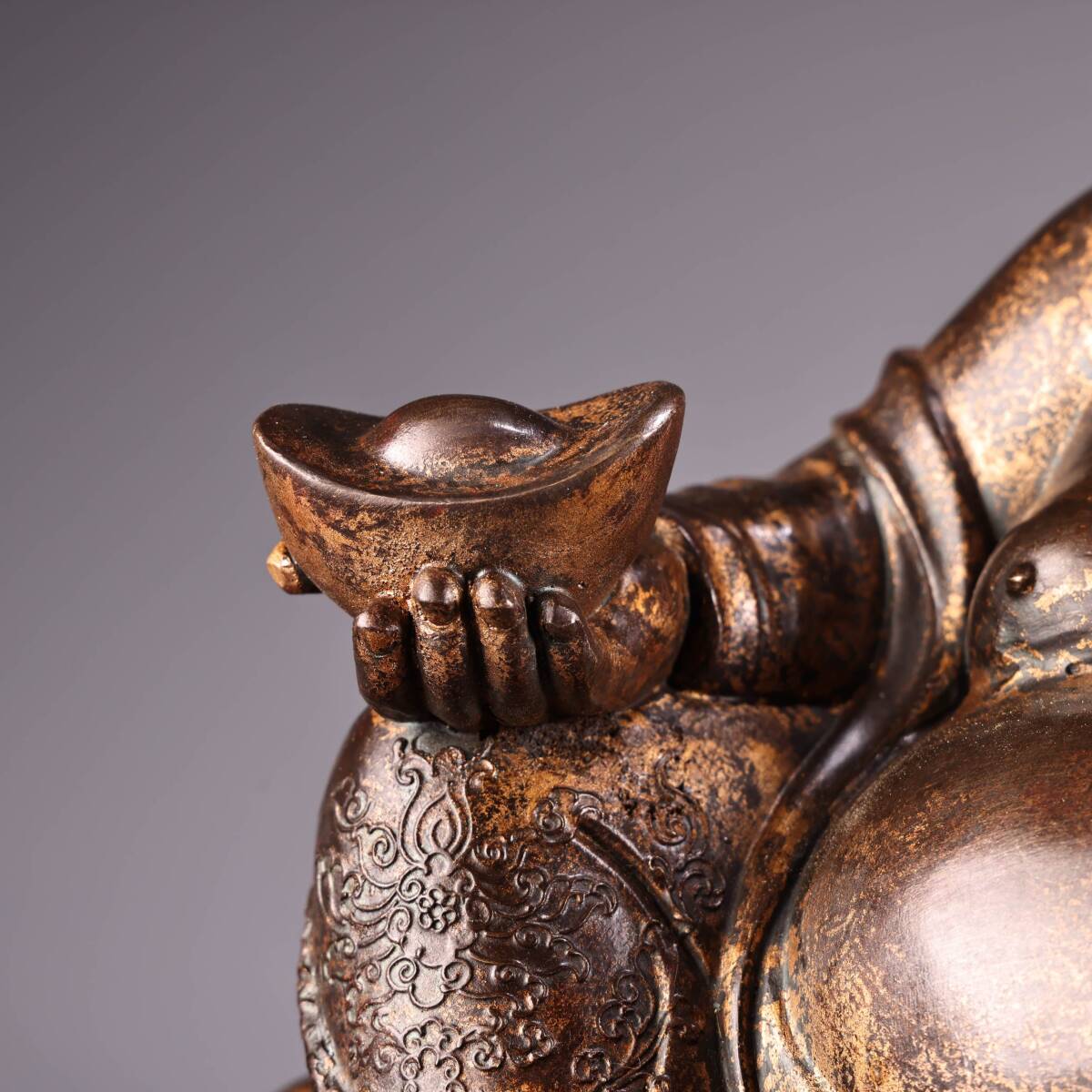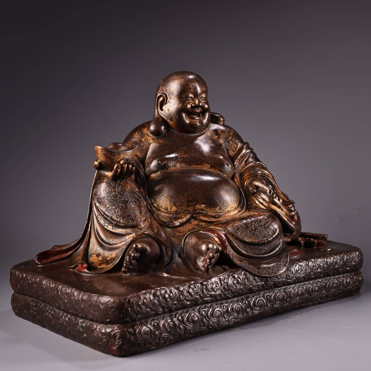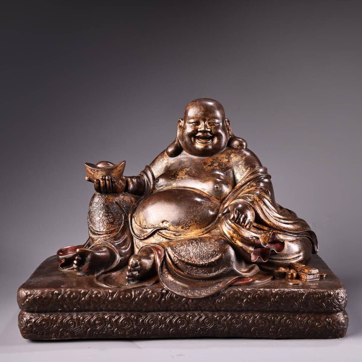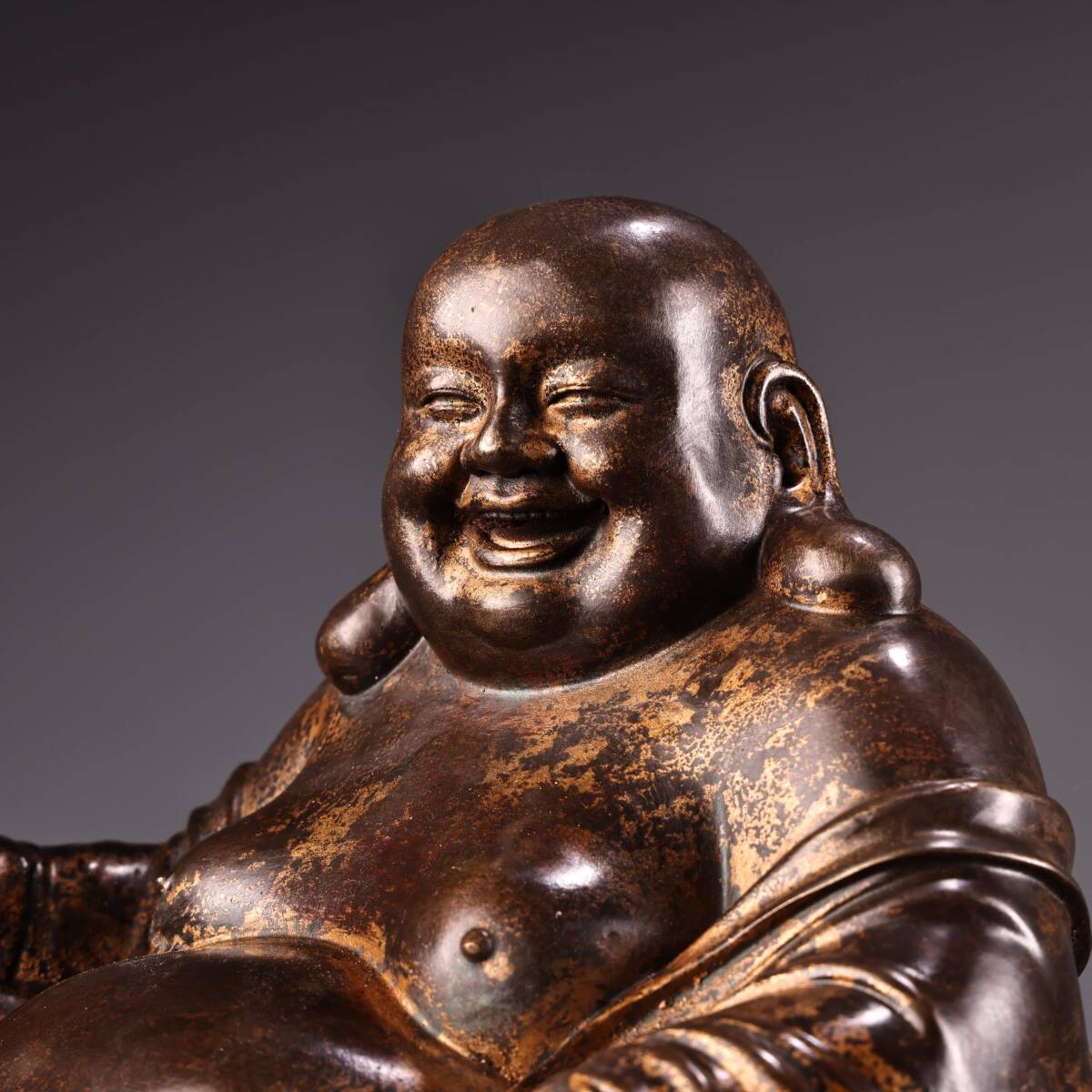 唐物 清 純銅 全銅 高レリーフ鏨刻泥金 座招財弥勒 仏像 奉納されていた 供養品 銅製 古美術品 時代物 中国古玩 骨董品 D68