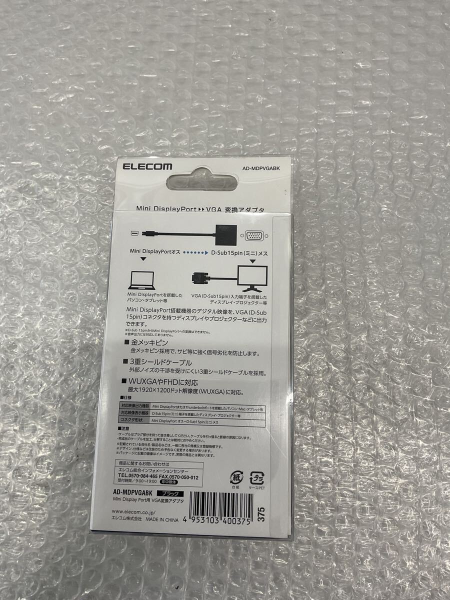 ◎(D1838) エレコム(AD-MDPVGABK)miniDisplayPort(オス)-VGA(D-Sub15ピン メス) 変換アダプタ 10個セット(戊4)