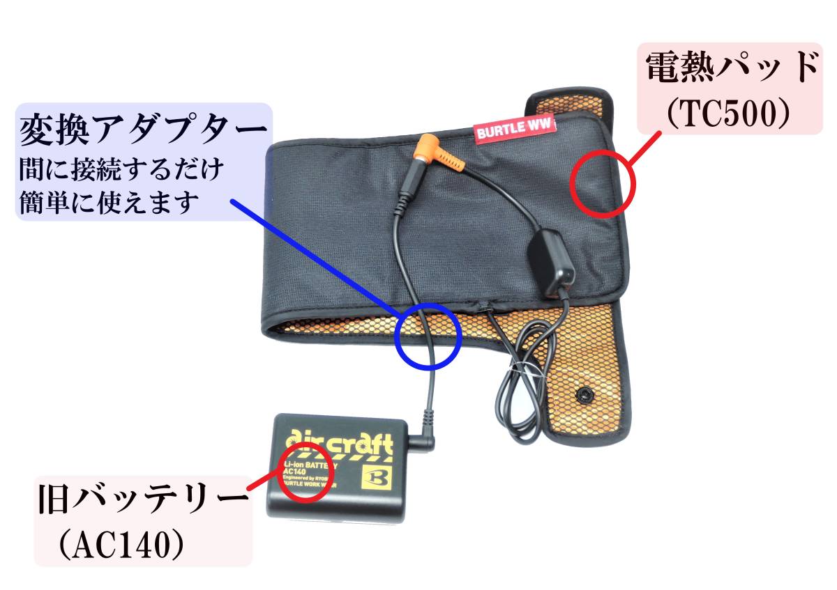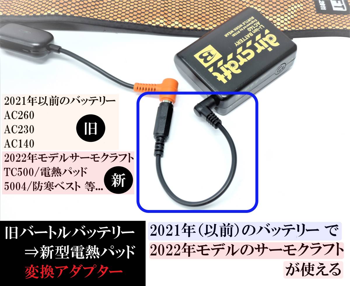即日発送 バートル 旧バッテリーで新型サーモクラフト が使える 変換 延長 アダプター AC140 AC230 AC260 TC500 電熱パッド 防寒ベスト ⑤