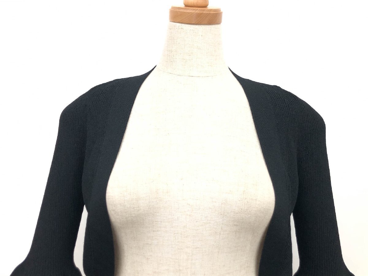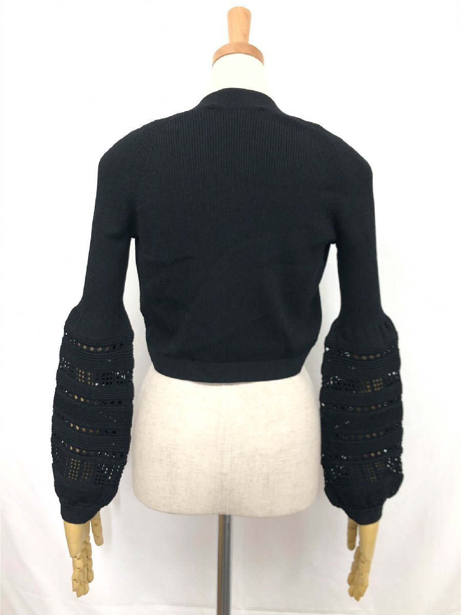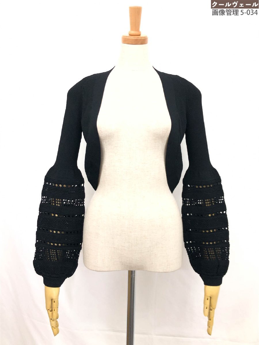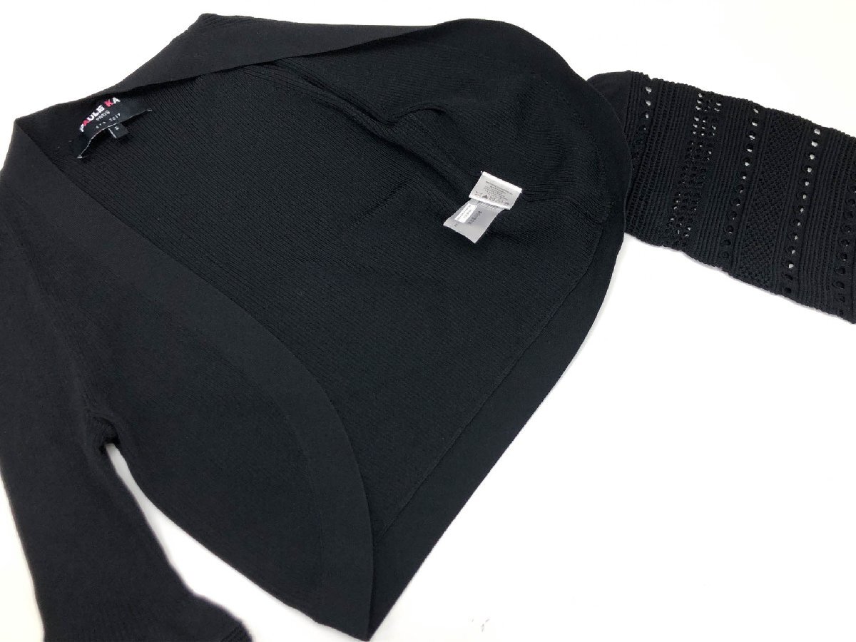 極美品【Paule Ka ポールカ】袖レース編みデザイン 薄手生地 ボレロ ニットカーディガン (レディース) sizeS ブラック ◇35LN5929◇