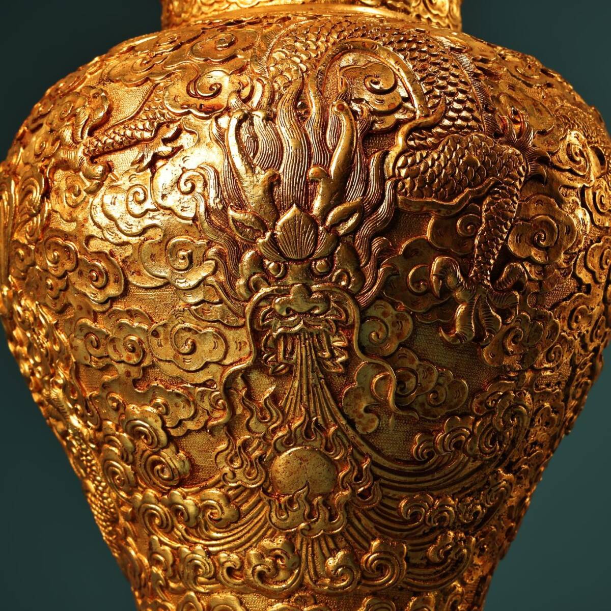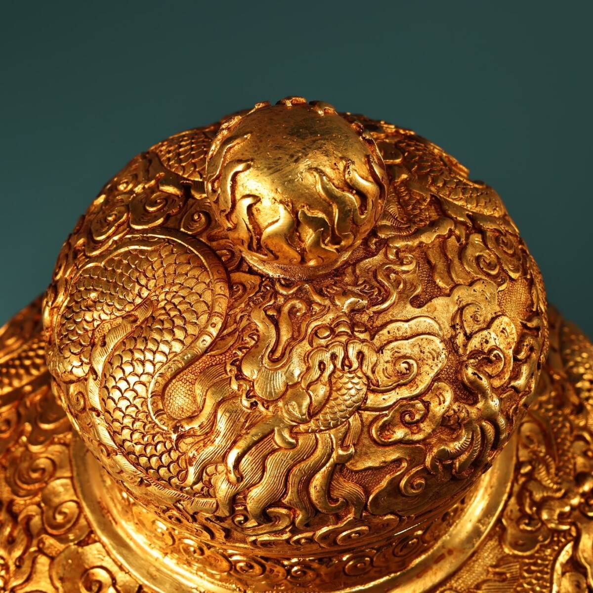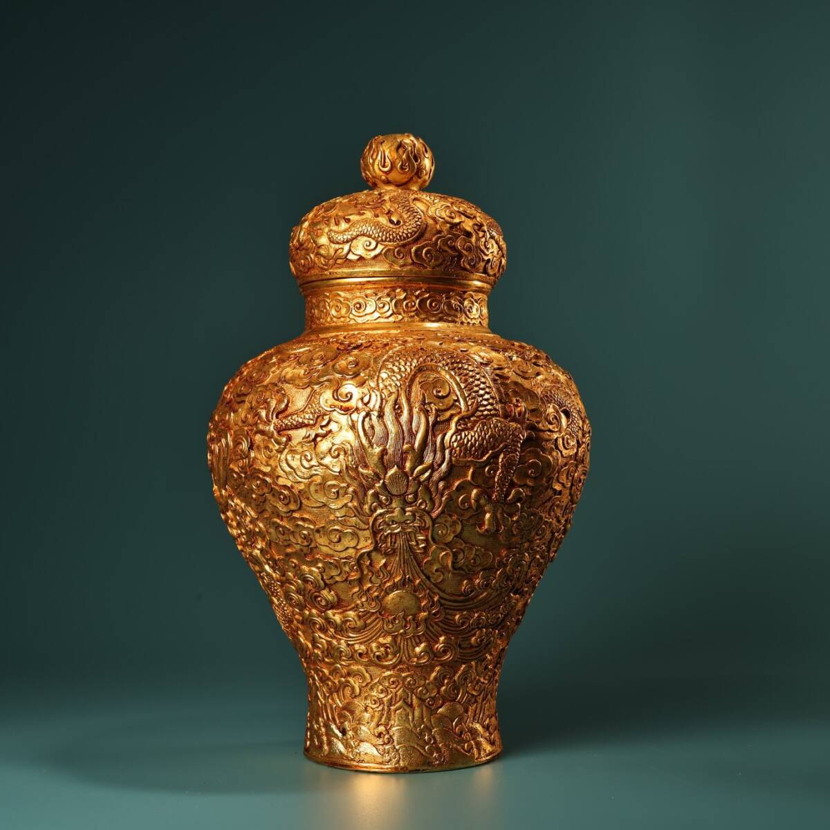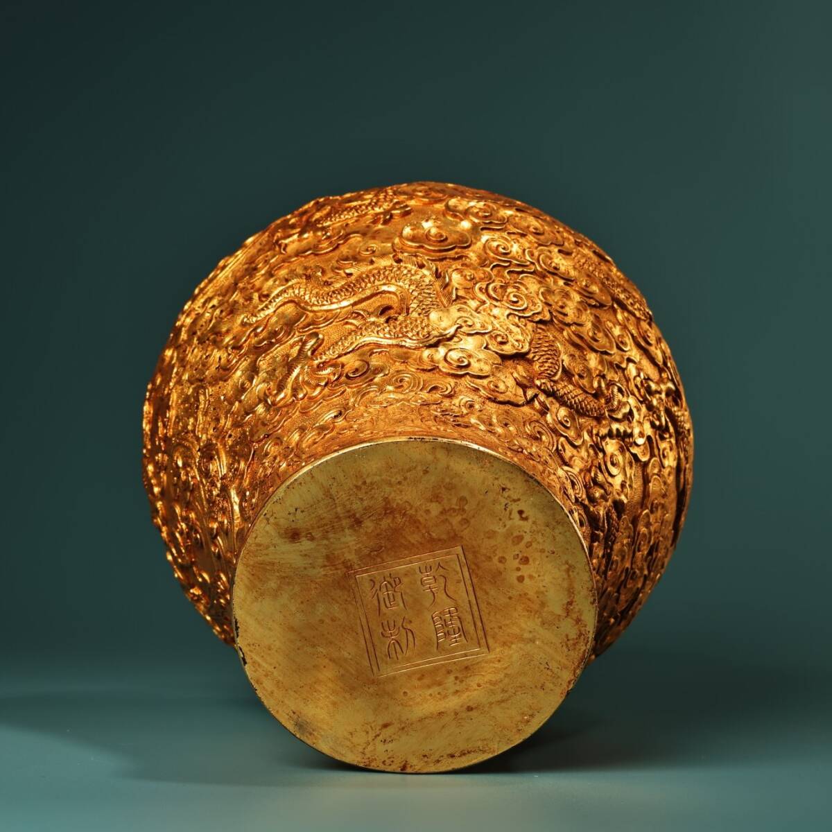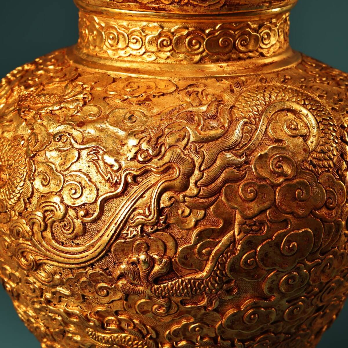 【超珍館蔵】銅製 塗金 九龍紋 將軍罐 置物 賞物 古賞物 古董品 古美術品 時代物 旧家蔵出 稀少珍蔵品