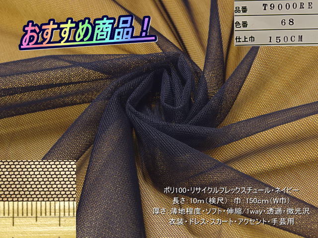 商品は、ポリ100・リサイクルフレックスチュール・ネイビーでございます。