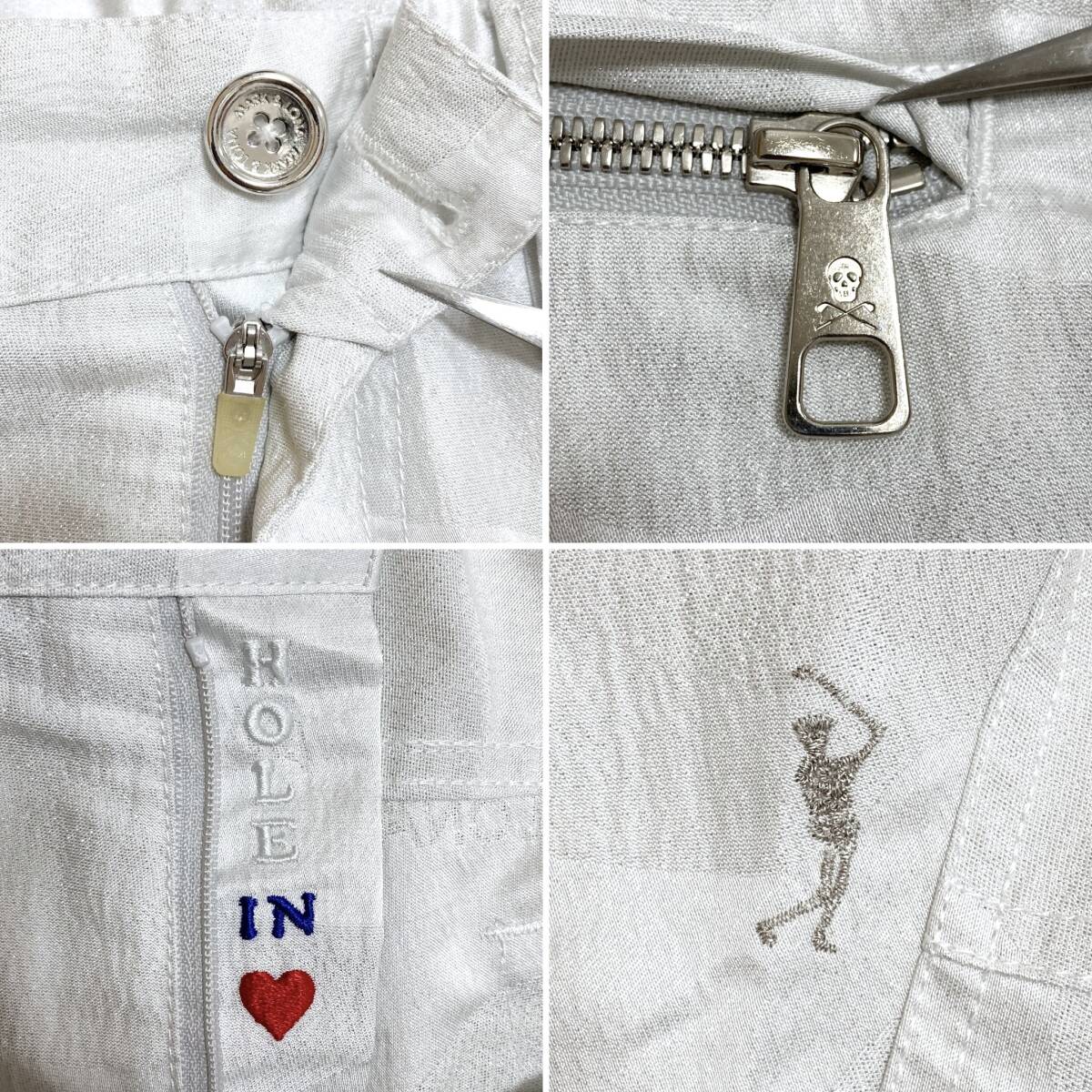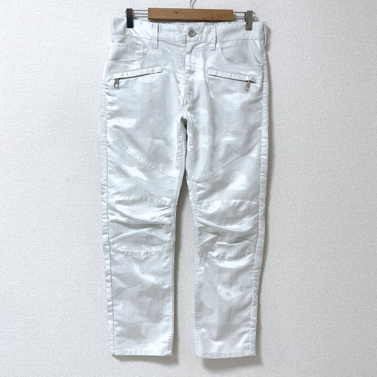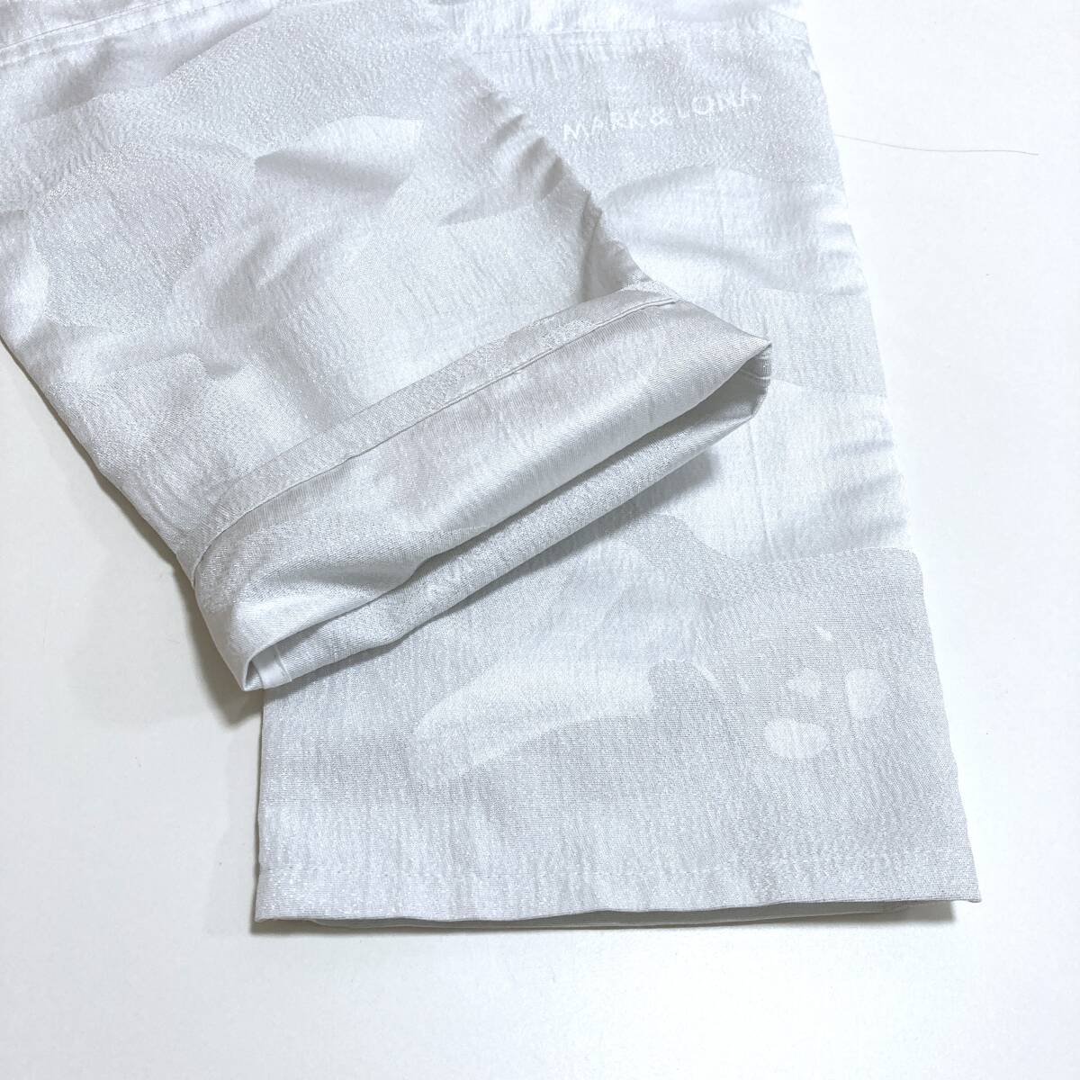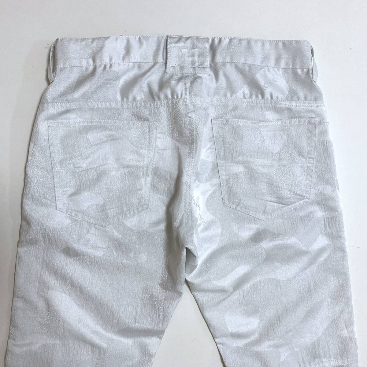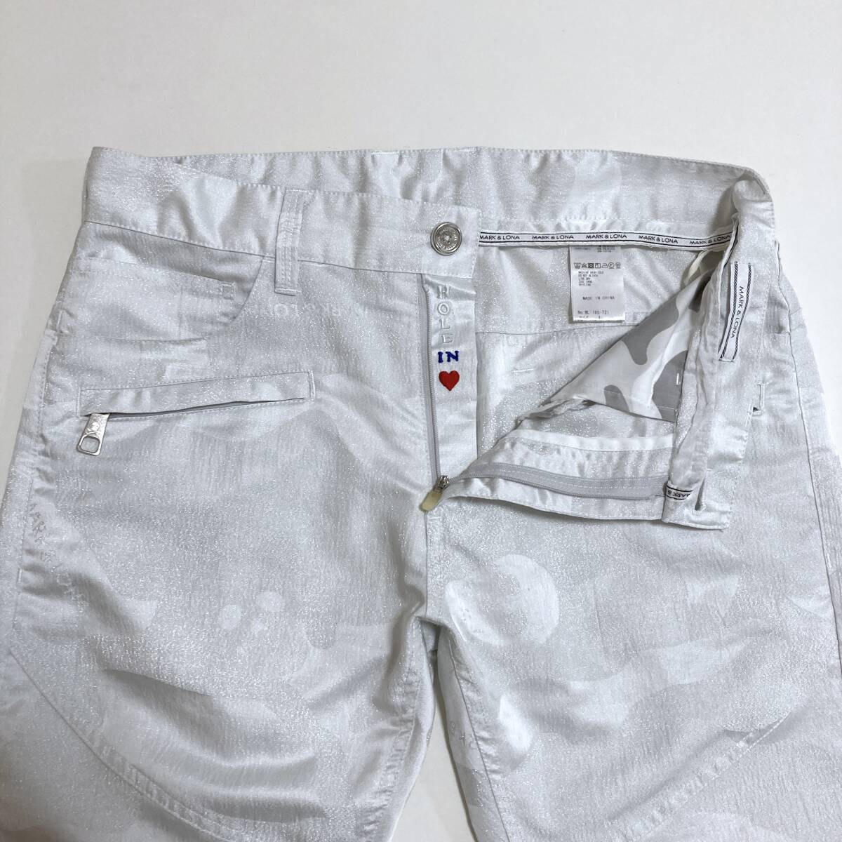 MARK&LONA カモフラ ラメ ジャガード 総柄 テーパードパンツ ホワイト 白 Lサイズ マークアンドロナ 迷彩 ゴルフウェア 5050261