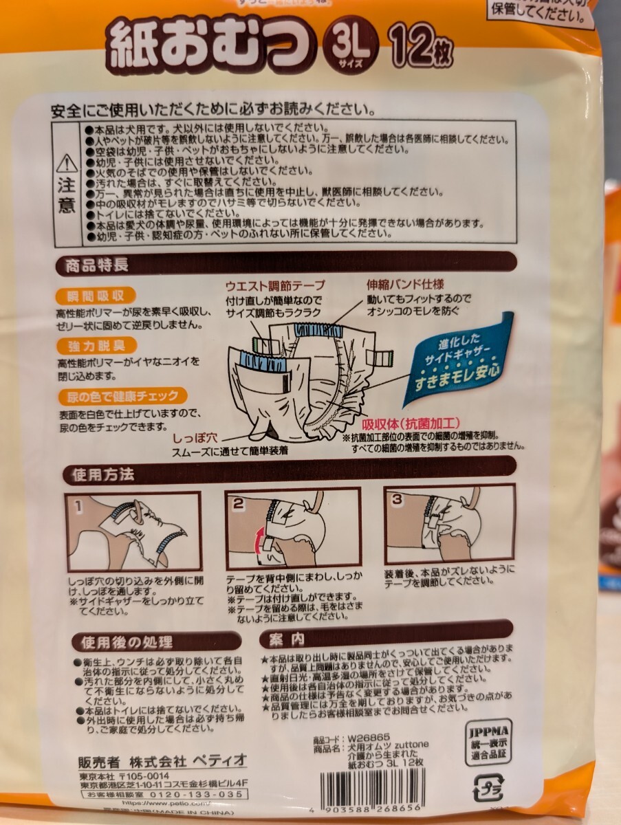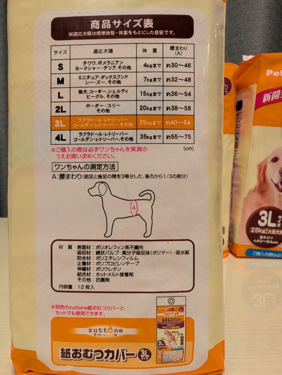 犬用の紙おむつ3L 1袋12枚入り 4袋