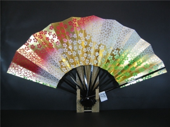 舞扇子 A57 赤・草両妻ぼかし 金箔桜 【箱なし】