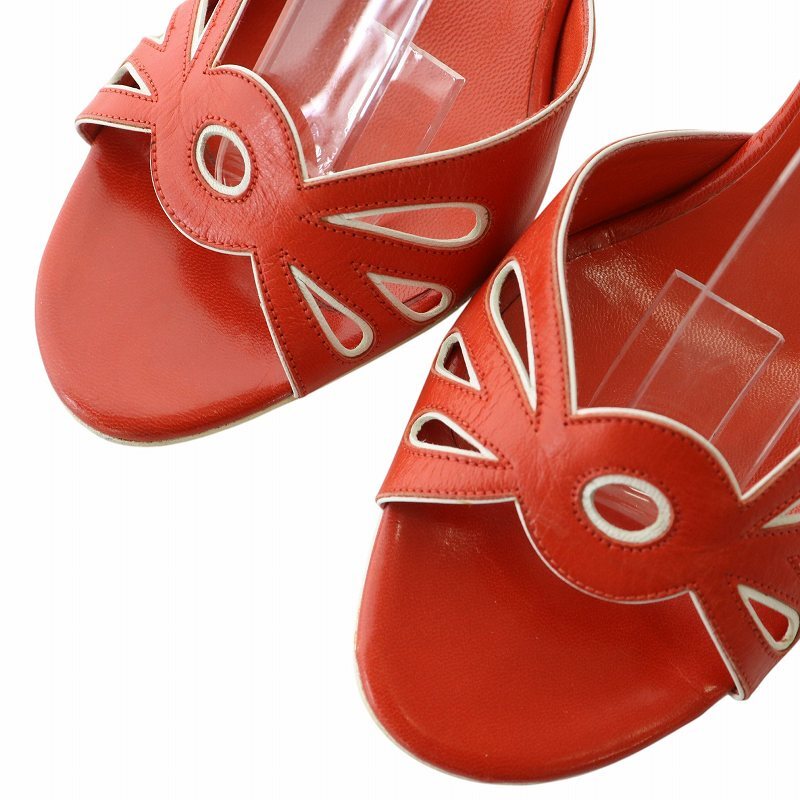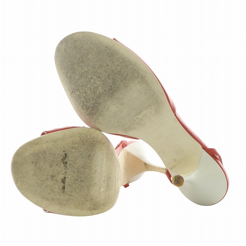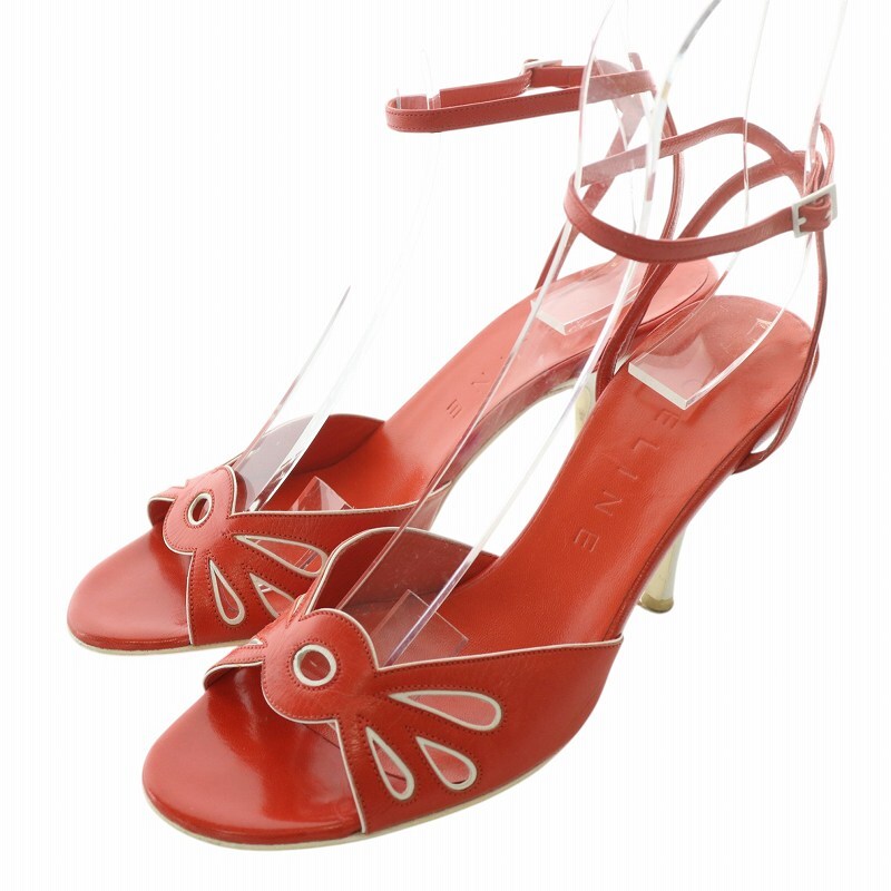 セリーヌ CELINE サンダル レザー オープントゥ ハイヒール ストラップ 36.5 23.5cm 赤 レッド /XZ ■GY03 レディース