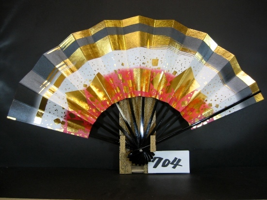 舞扇子 A704 金箔かすみ小石砂子 黒・赤天地シルバー引き 【箱なし】