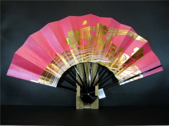 舞扇子 A293 赤天ぼかし シルバー引き 金箔桜流水 【箱なし】