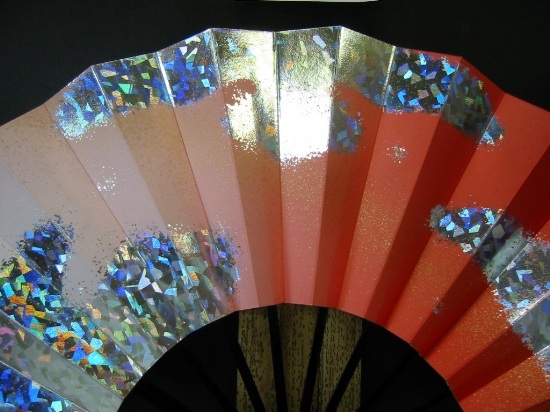 舞扇子 A1012 ホロ雲 朱横ぼかし金ピース 【箱なし】