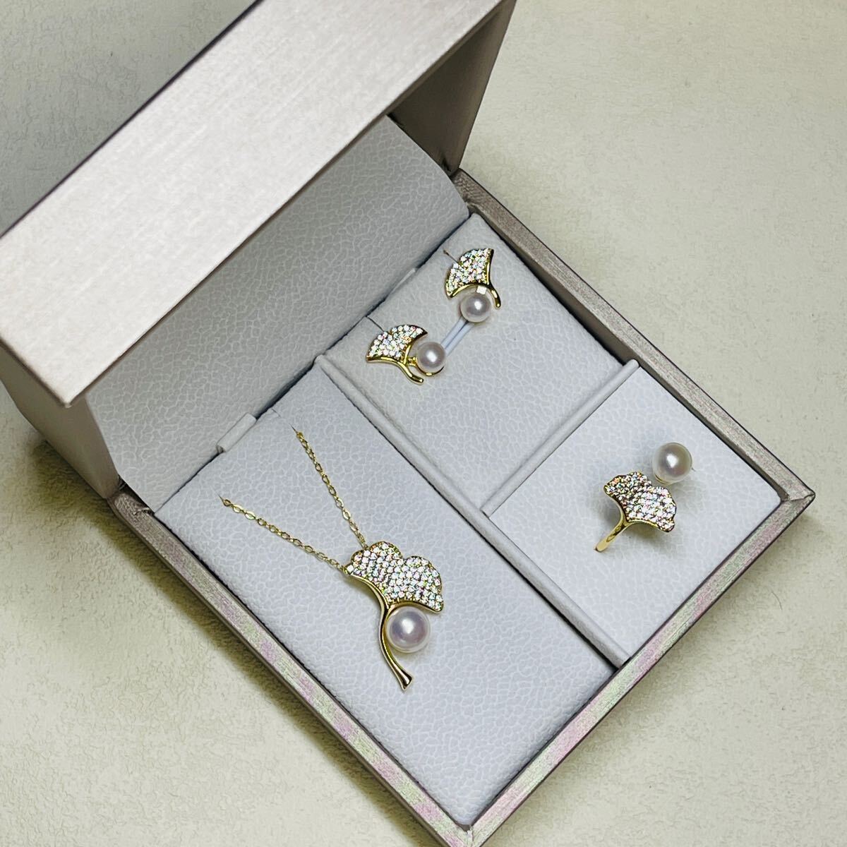 イチョウ葉パールジュエリーセット|自然美の永遠の賛歌
