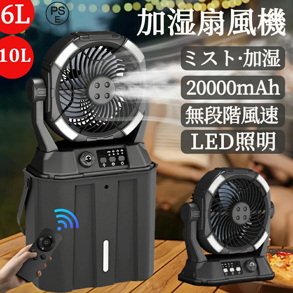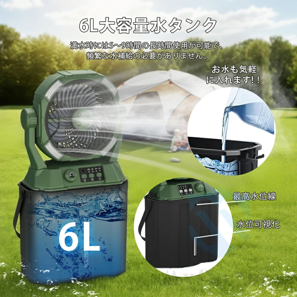 キャンプ 扇風機 アウトドア 扇風機 冷風機 ミストファン 20000mAh ミスト 瞬間冷却 6L 水タンク 卓上扇風機 静音 USB充電式 加湿 省エネ