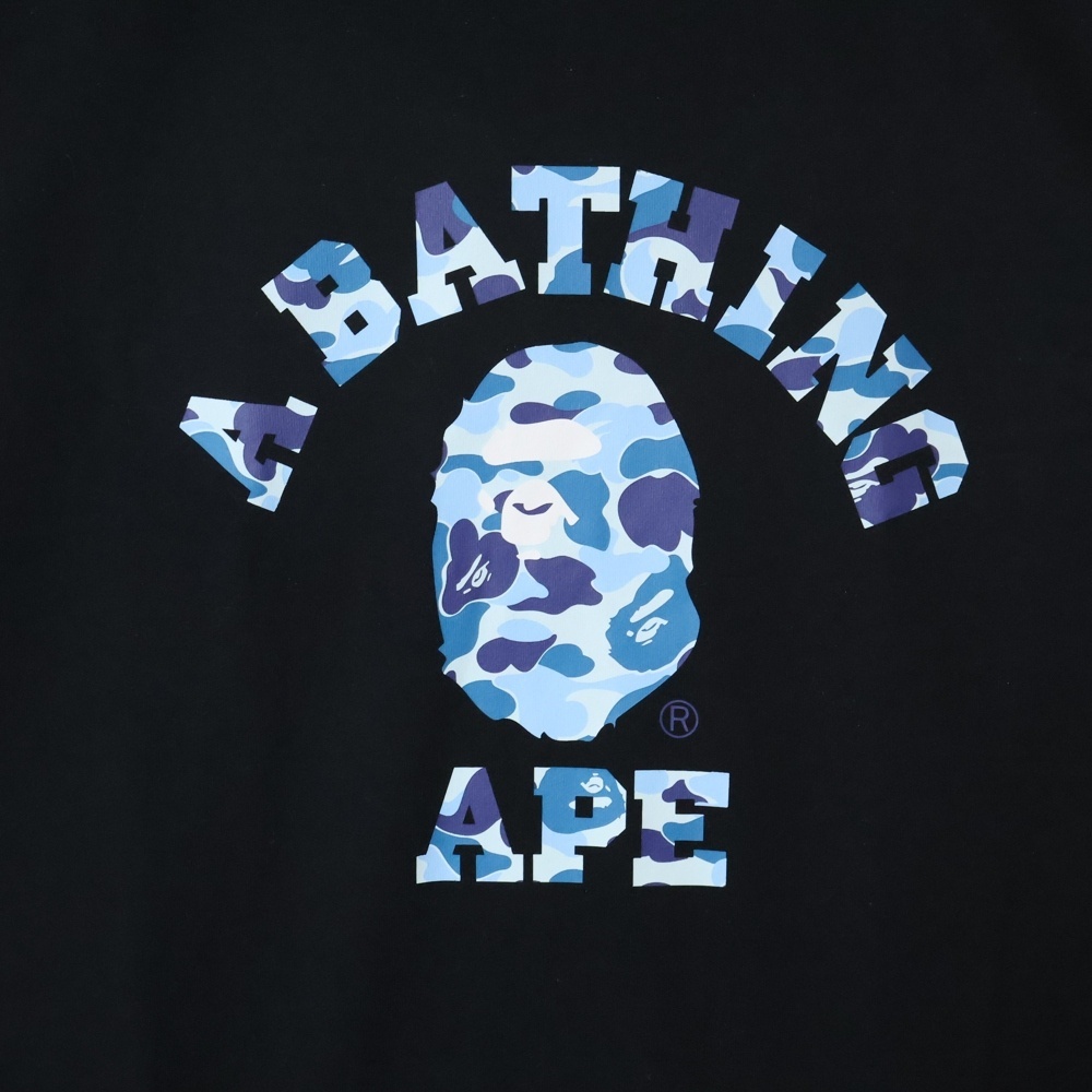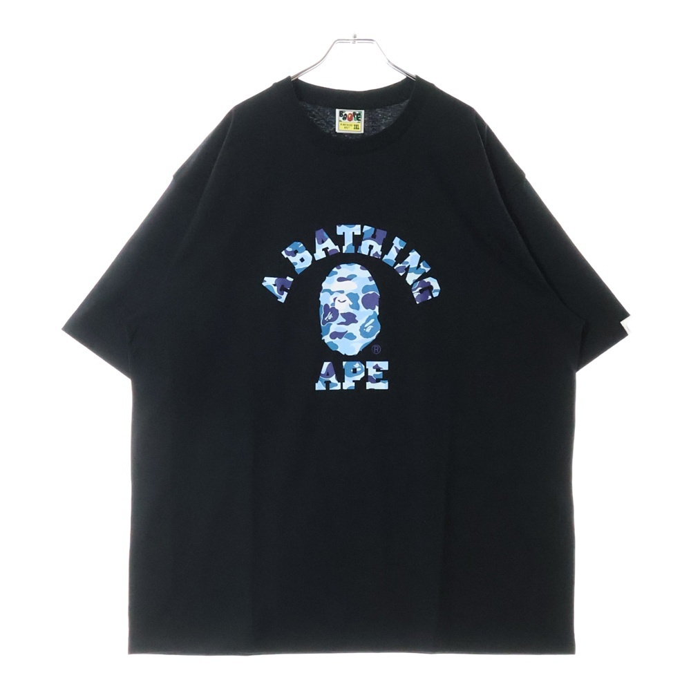 アベイシングエイプ ABC CAMO COLLEGE TEE ABC カモ カレッジプリント クルーネックTシャツカットソー ブラック/ブルー 001TEL801005M