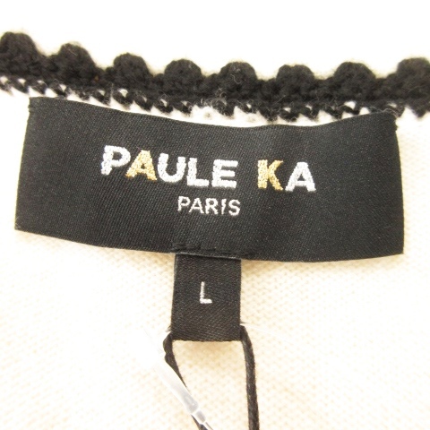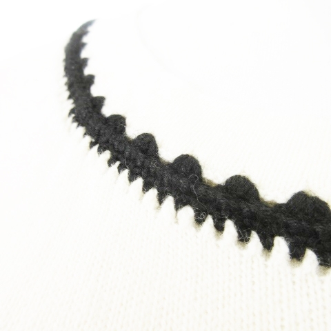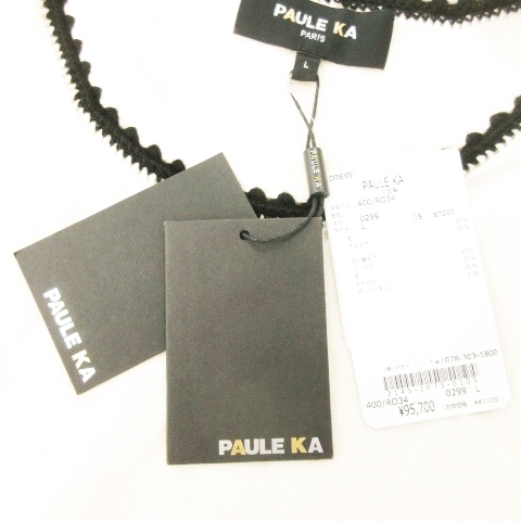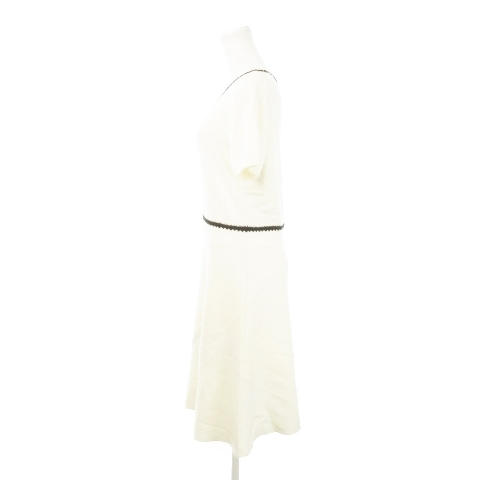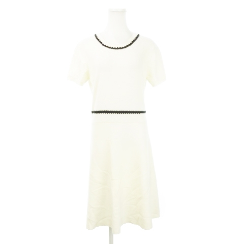 未使用品 ポールカ ニットワンピース ひざ丈 半袖 ウール アルパカ混 バイカラーライン サーキュラーシルエット L クリーム アイボリー