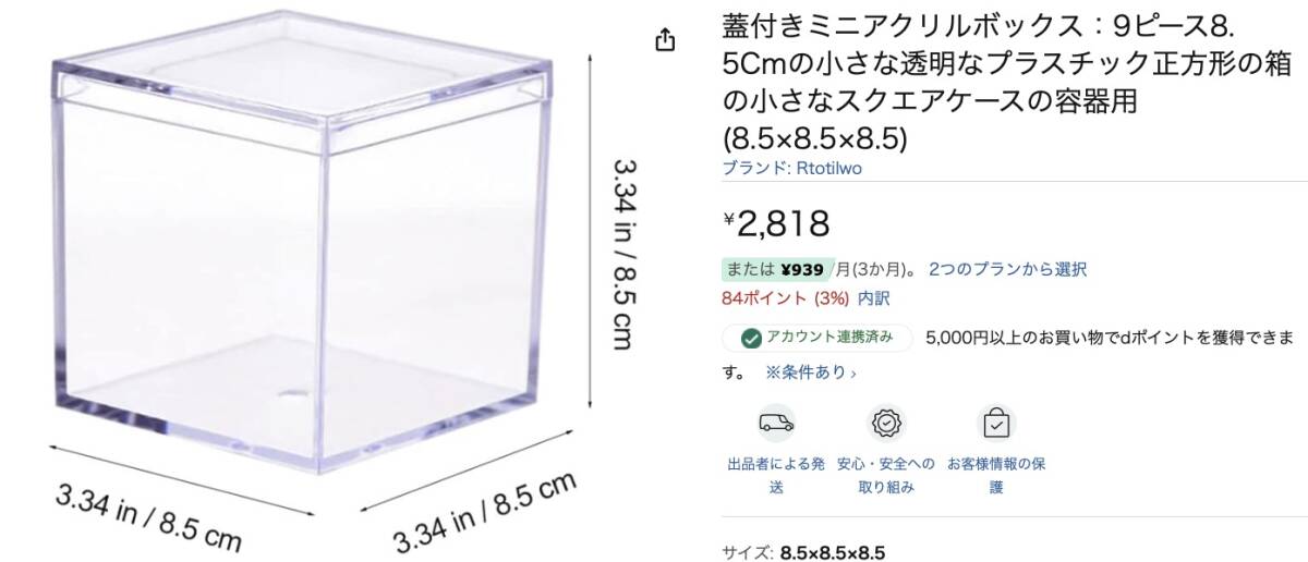 蓋付きミニアクリルボックス:9ピース 8. 5cm