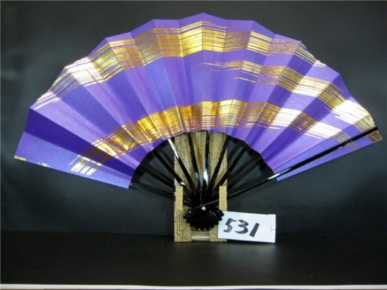 舞扇子 A531 金箔ななめかすみ 紫べた シルバー引き 【箱なし】