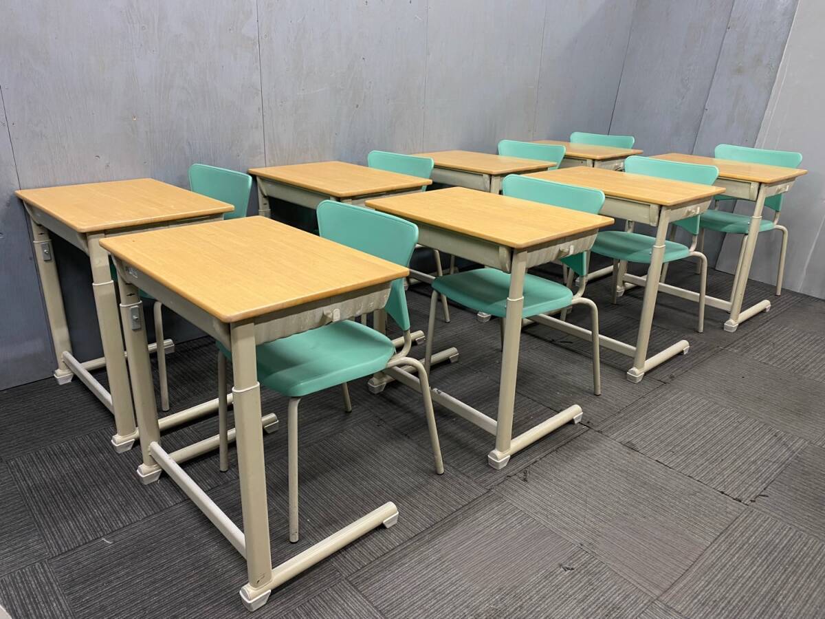 ◆管2363◆自社便対応地域あり◆オカムラ製◆上下可動式学童机8台 4-6号(旧JIS規格特-4号) ◆スタッキングチェア8脚セット◆学校学習塾等