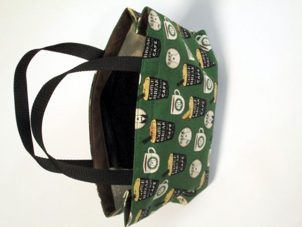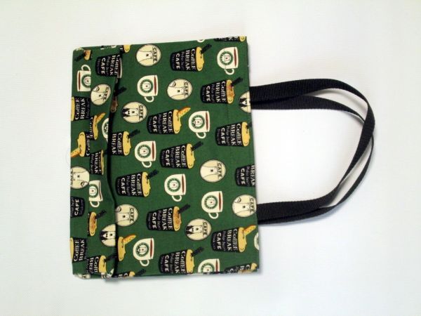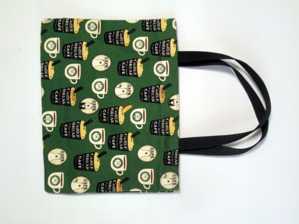 | ☆HM340 ハンドメイド 緑地バッグ コーヒーカップ柄 内ポケット付き☆ |