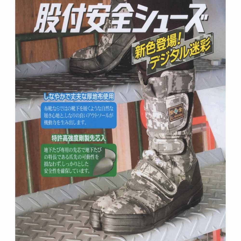 安全シューズ エルウインズ デジタル迷彩柄 26.5cm 鋼製先芯入 マジック脱着式 作業靴 荘快堂 VO-803