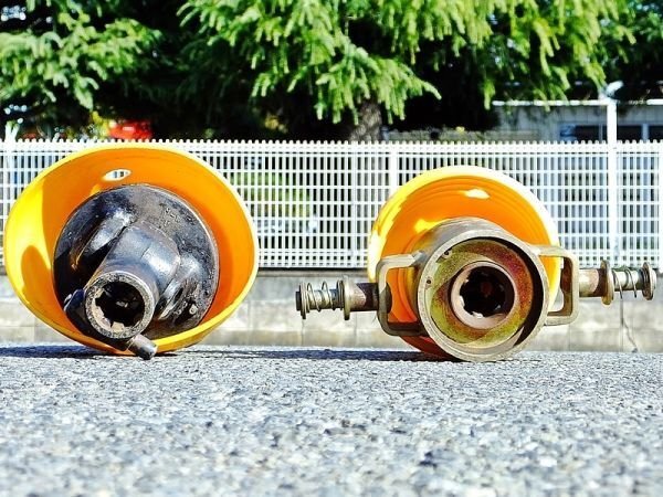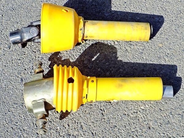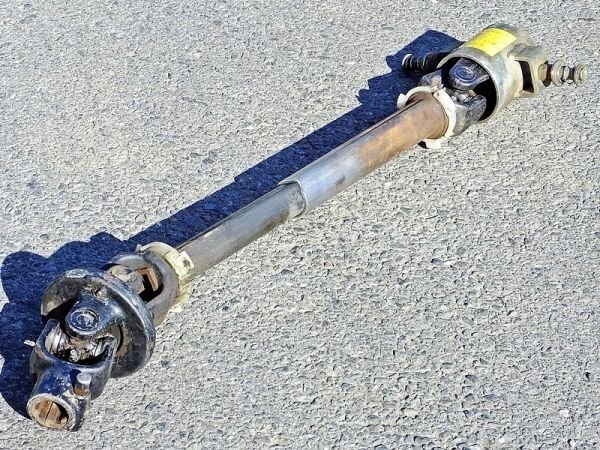 全長は最短で約650mm~最長で約950mm程になります。 固着分部は特に見受けられず、手動での回転は確認済ですが、トラクター等に装着しての、実演動作は未確認の状態になります。 農機具特有の傷汚れ錆等の使用感が見られます。 |