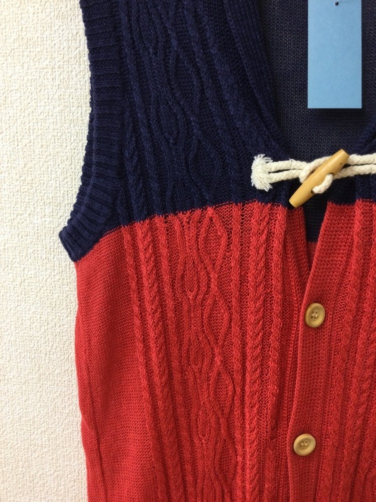 管理番号:10^133860 a.v.v HOMME バイカラー ニットベスト 赤と紺 メンズ 表示サイズ:L 実寸(参考)