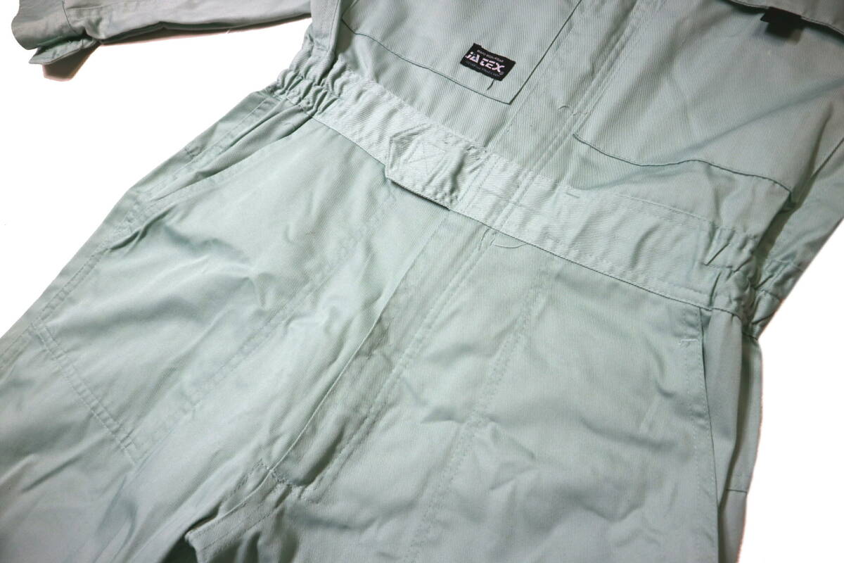 ・やや薄手の着やすく丈夫な65/35ポリ綿地、腰伸縮の動きやすい作りです。JATEXの9060、つなぎです。