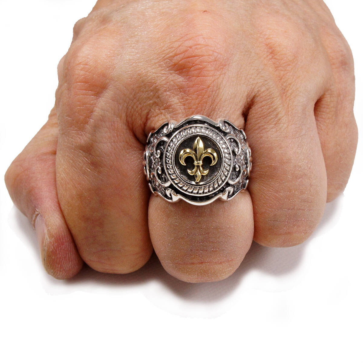15号 17号 18号 19号 20号 21号 23号 26号 27号 28号 30号 31号 32号 フルール・ド・リス 真鍮 925シルバーリング 925刻印あり TAN-R003
