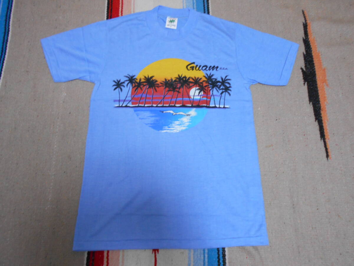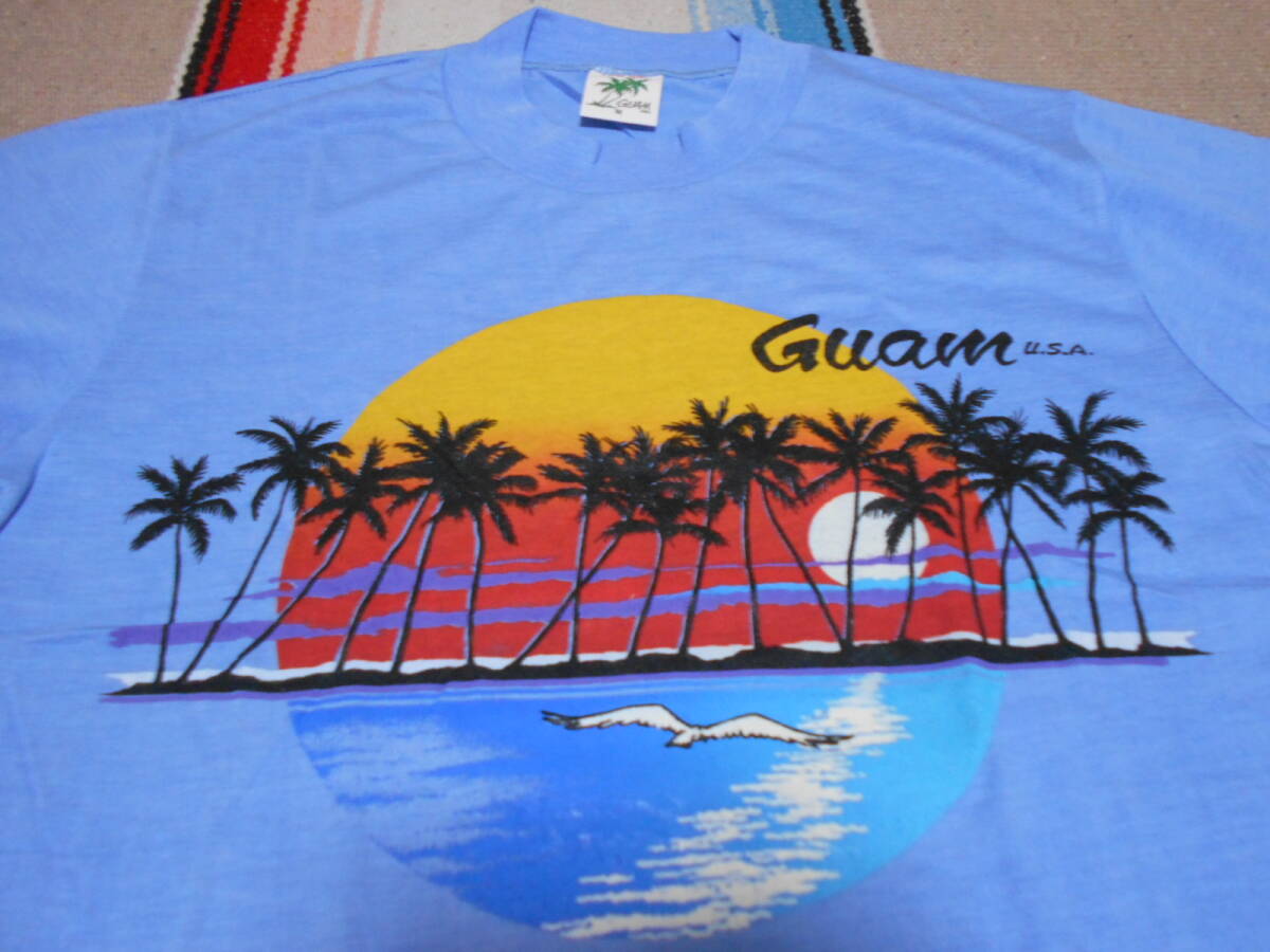 40年以上前のオールドサーフ特有、サーフサイドのパームツリー、サンセットと海面リフレクション、GUAM USA クラシックレタード、シーガル   等々...ディテールがが極めて良いトロピカルテイスト