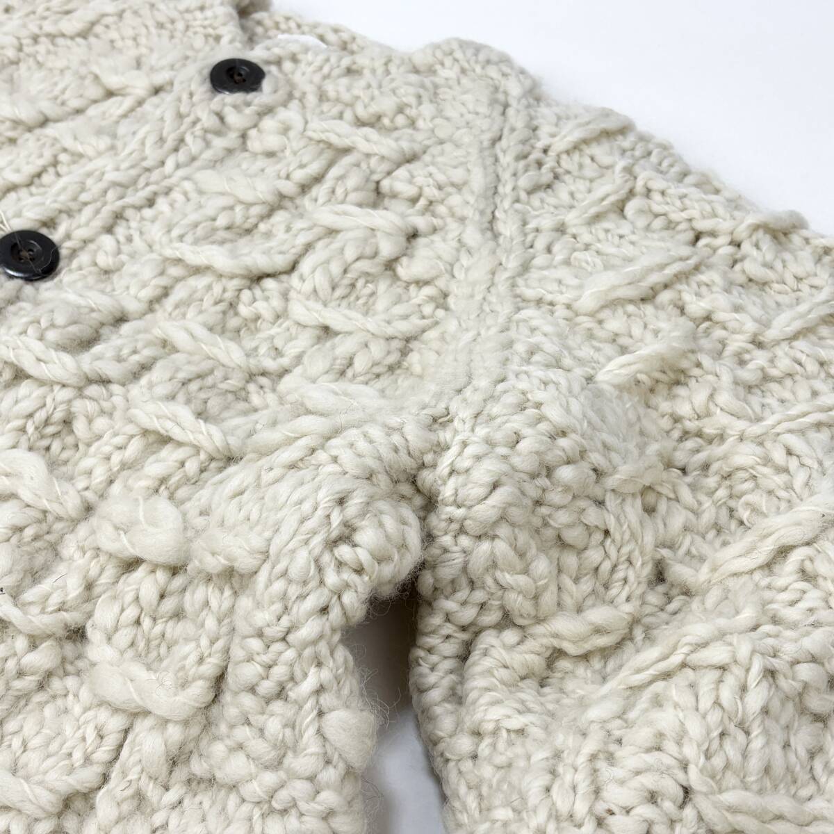独特な風合いが特徴の羊毛を使用したペルー産のハンドニットカーディガン。